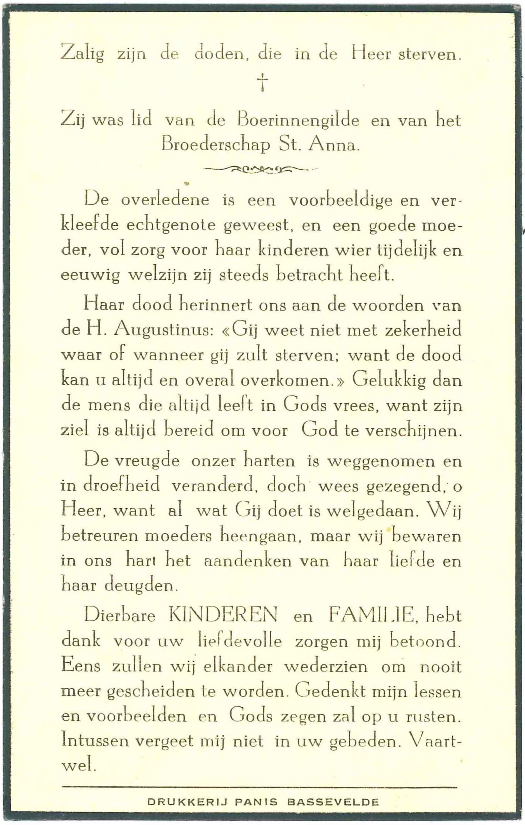 godvruchtig overleden te Bassevelde, 27 Juli 1954.