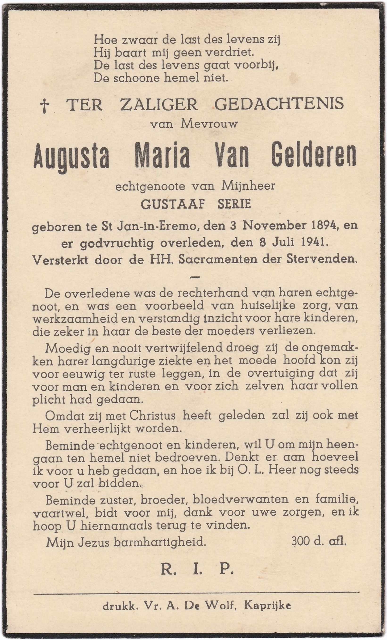 Onze beste dank voor dit aandenken aan Mevr. Hubert Dusarduyn, née Marie-Aimée Van Damme.