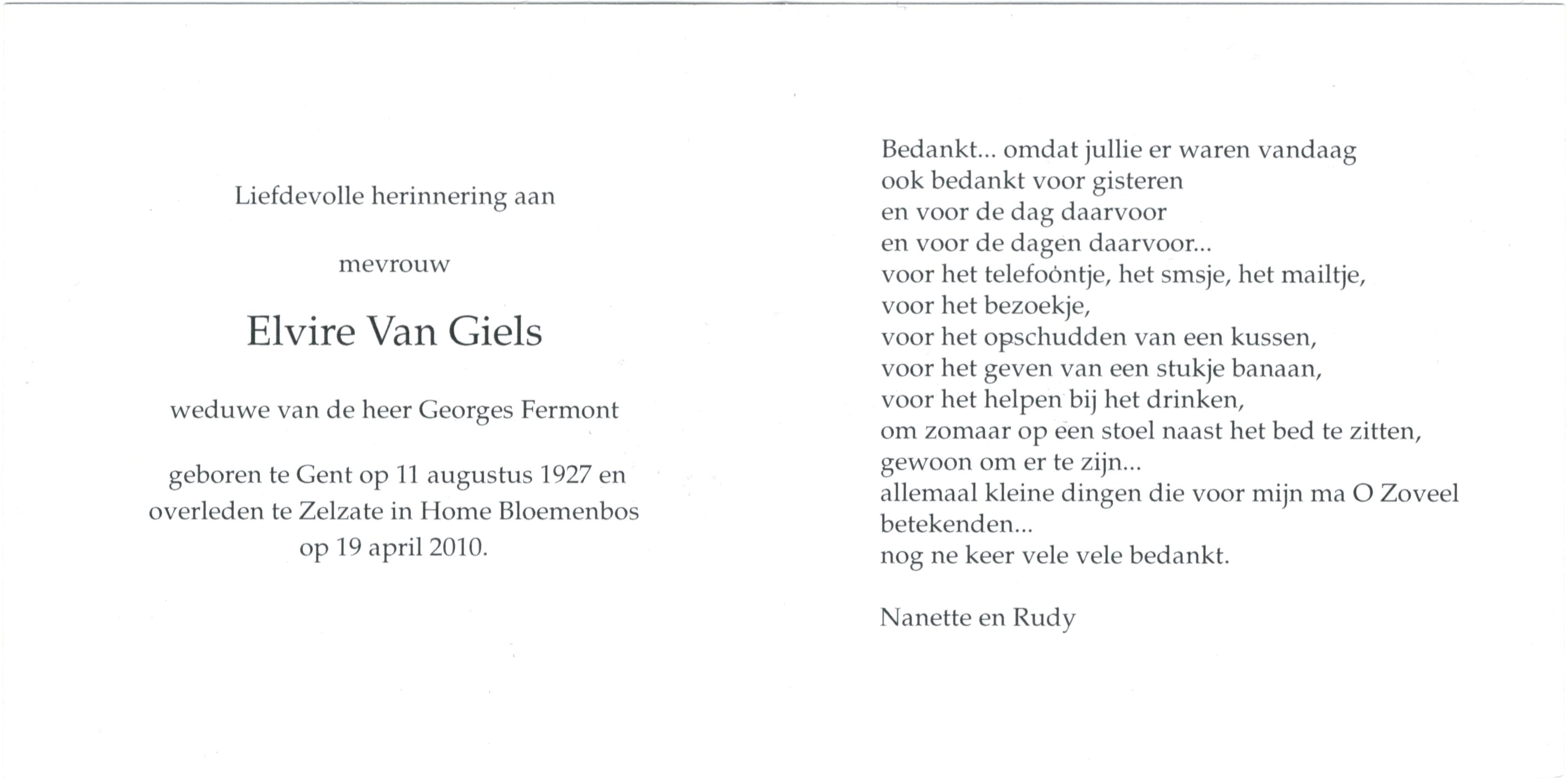 overleden te Zelzate in Home Bloemenbos op 19 april 2010.