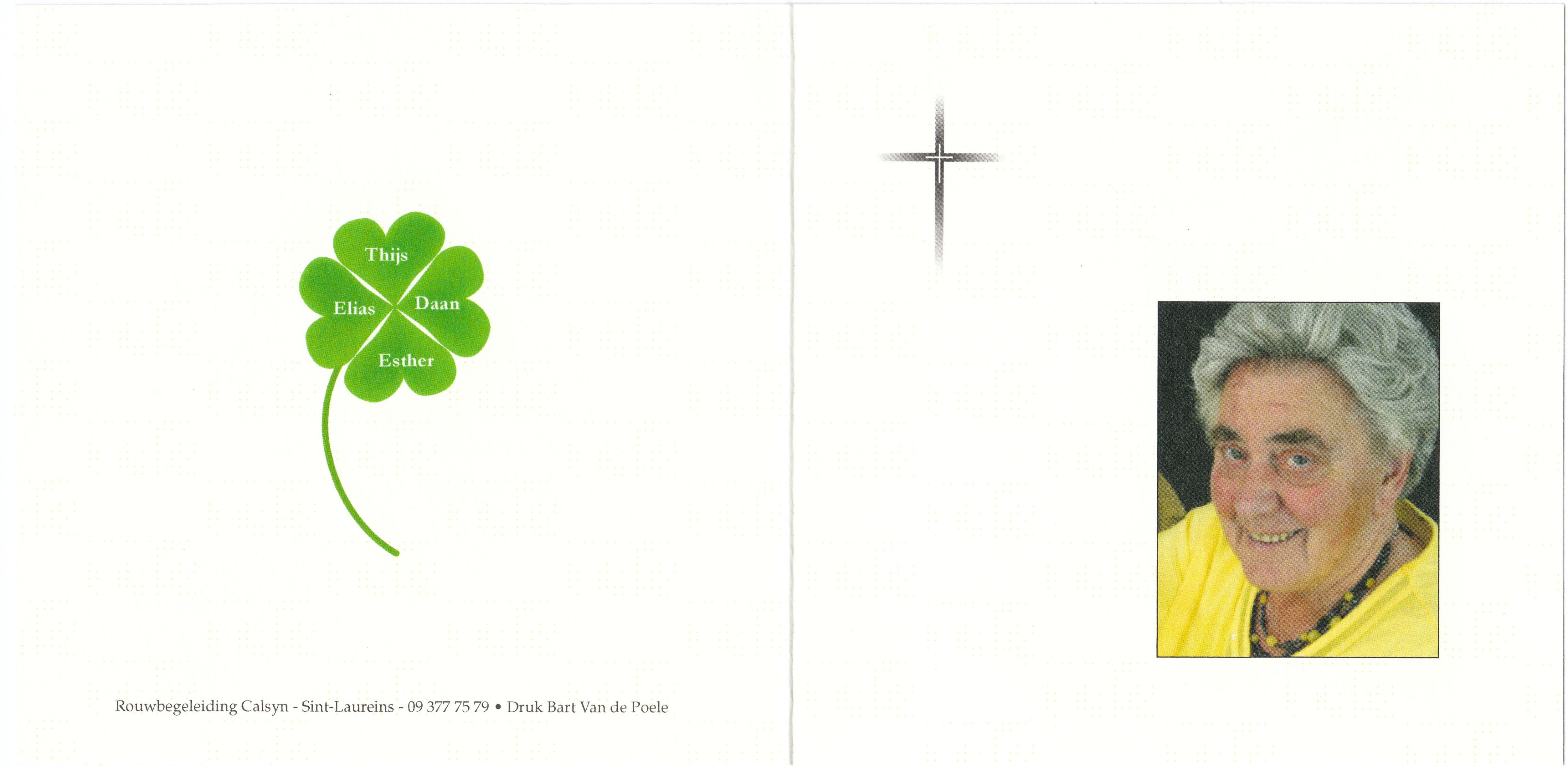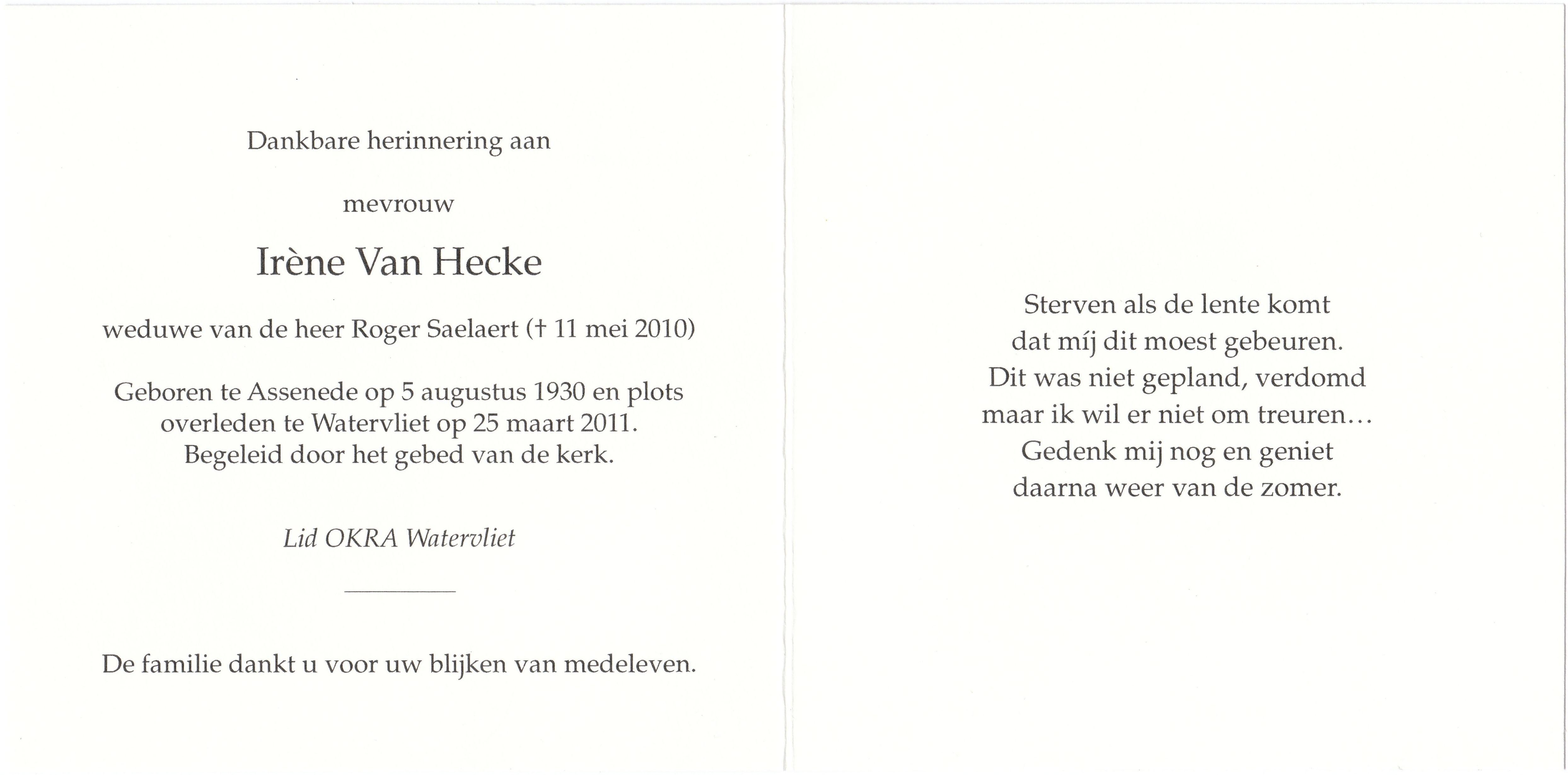 weduwe van de heer Roger Saelaert († 11 mei 2010)
