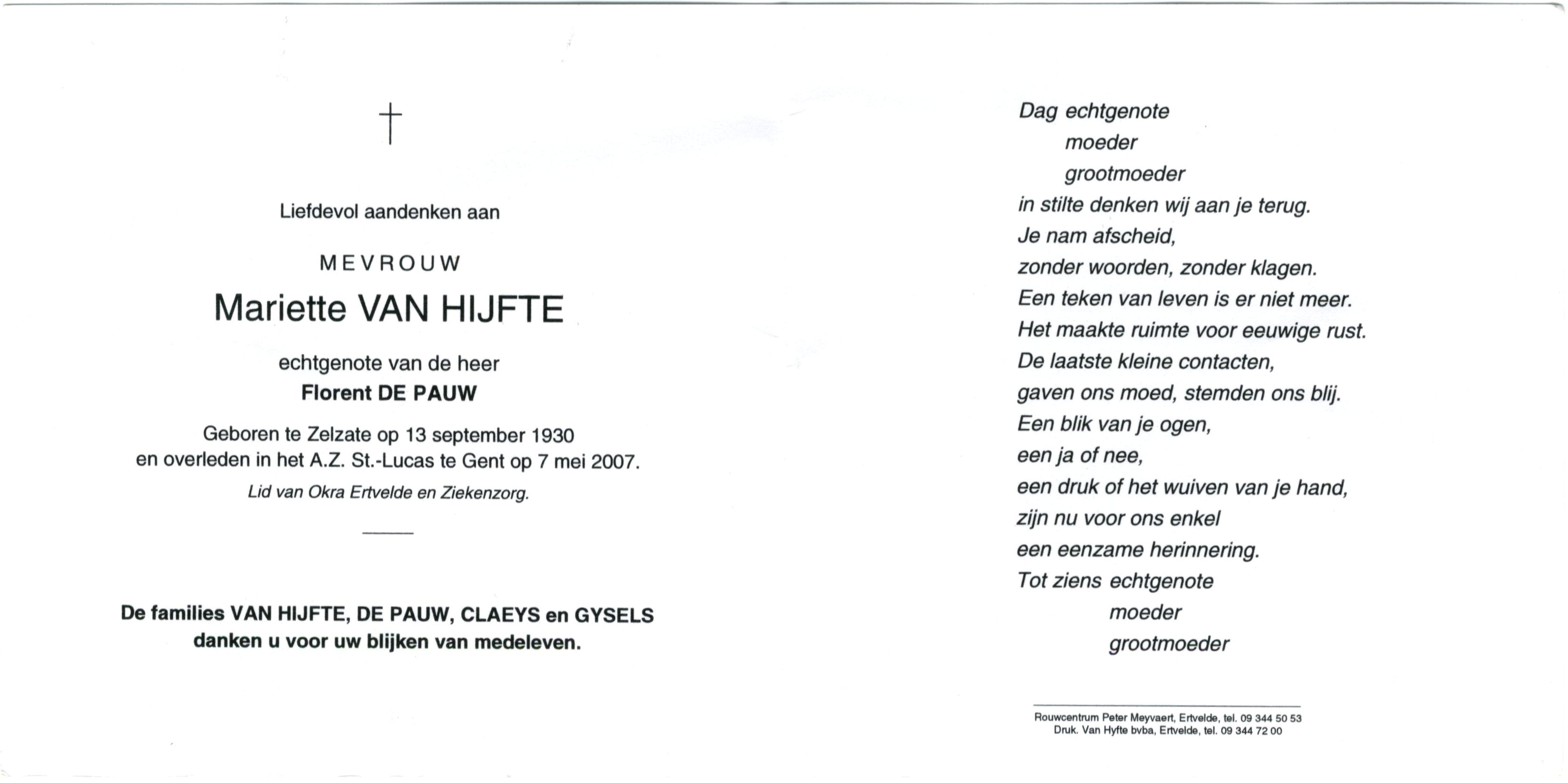 en overleden in het A.Z. St.-Lucas te Gent op 7 mei 2007.