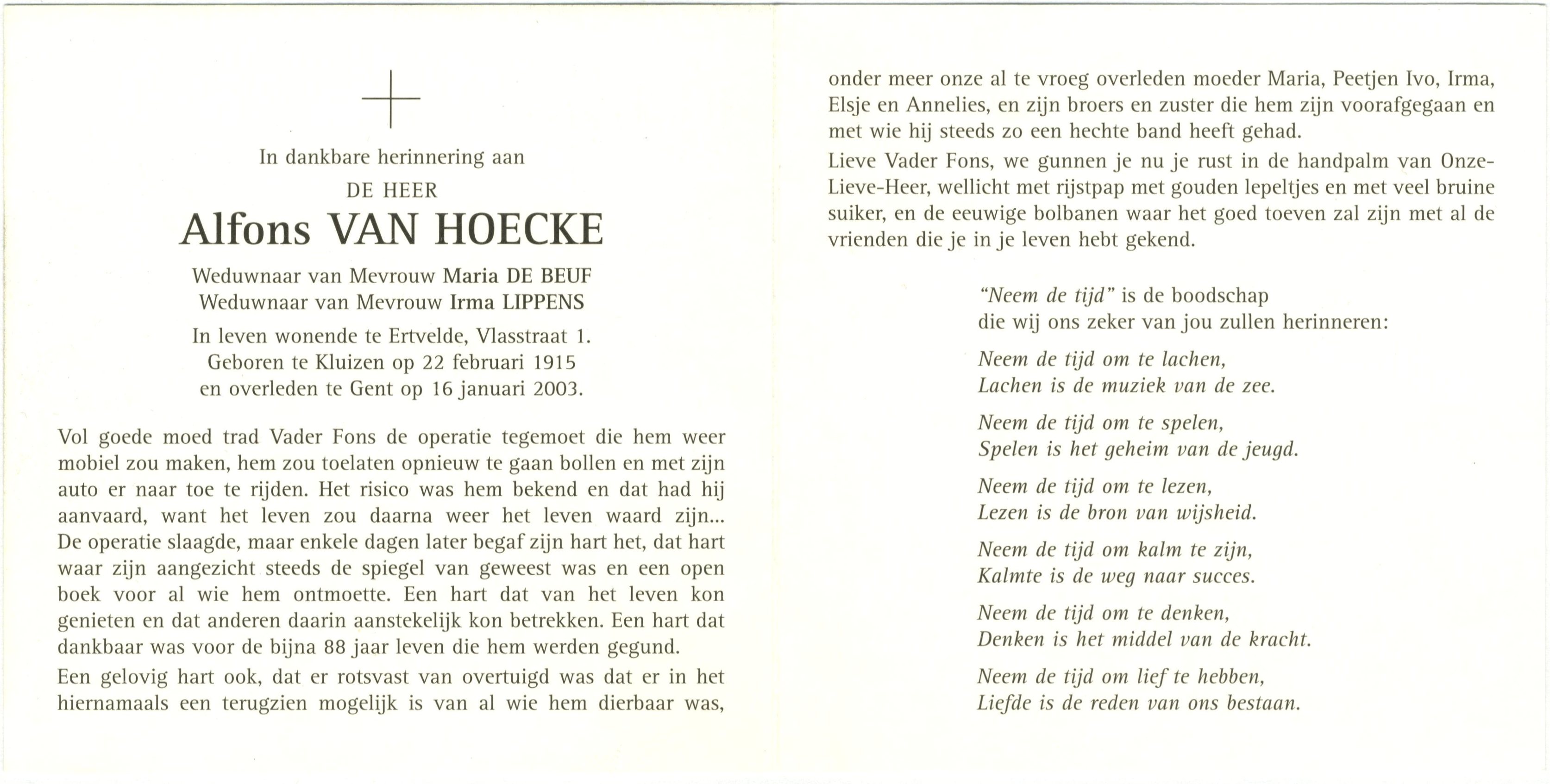Onze beste dank voor dit aandenken aan Mevr. Leon Lambrecht, née Agnes De Clerck.