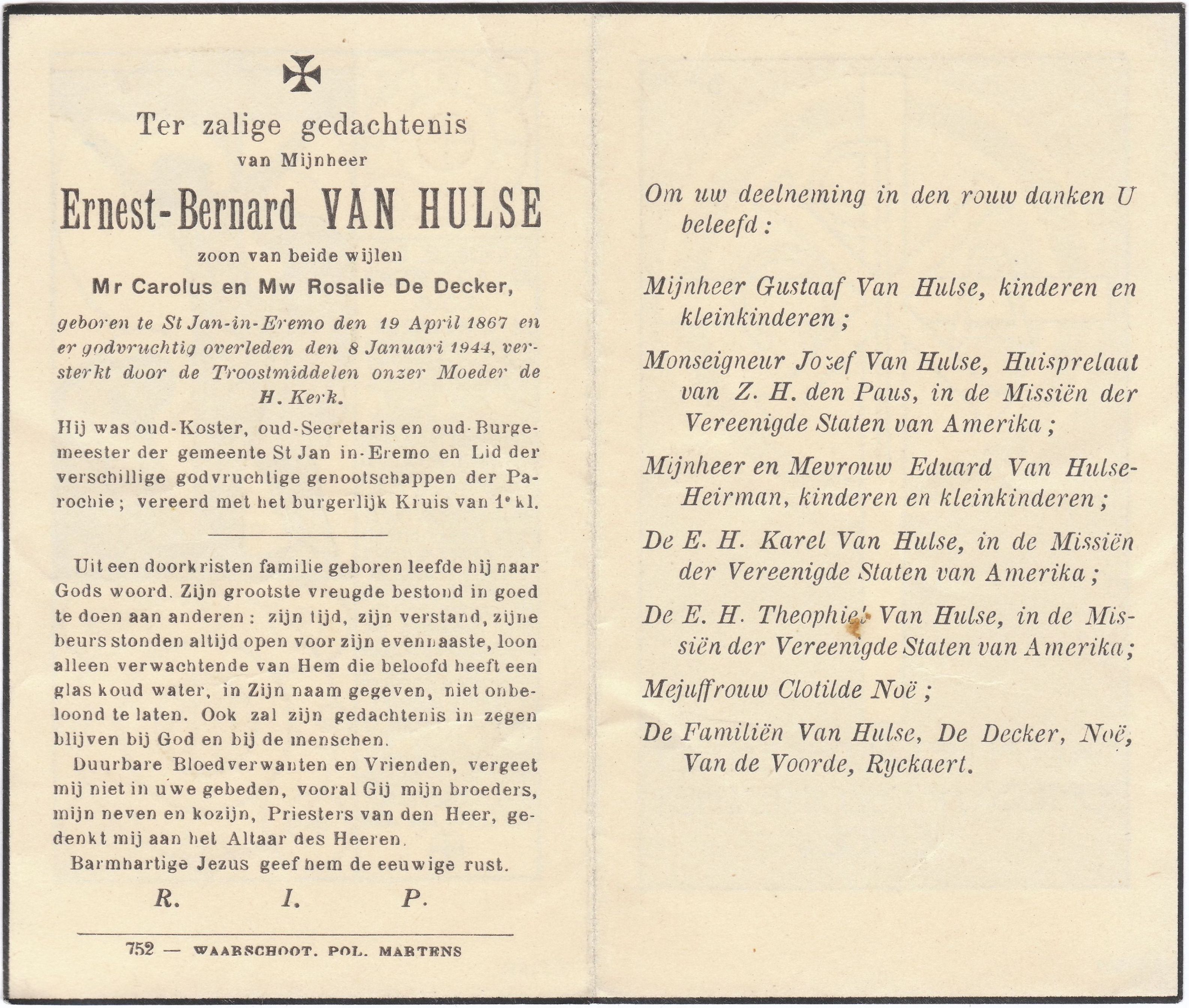 zoon van beide wijlen Mr Carolus Van Hulse en Mw Rosalie De Decker