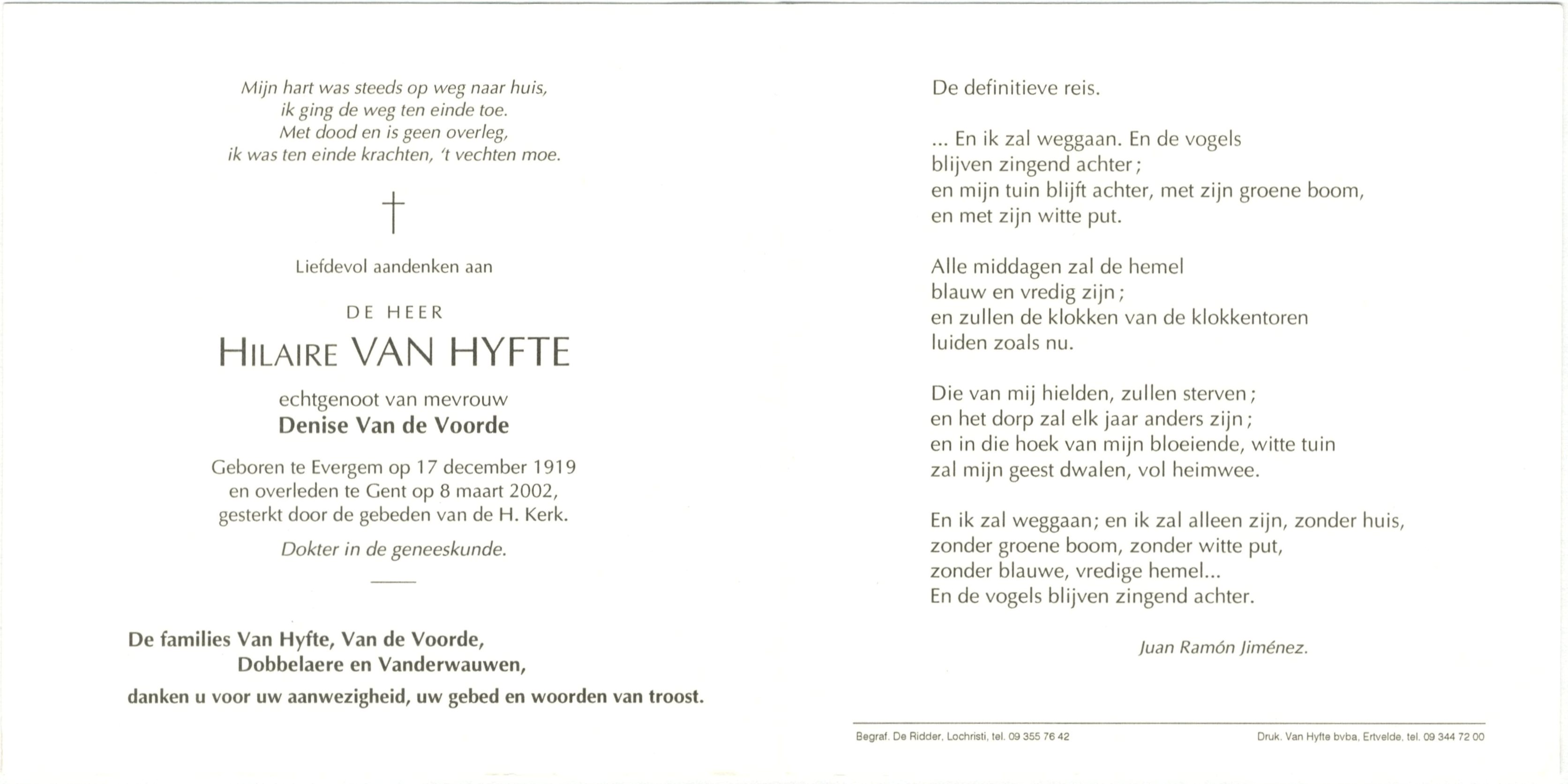 Onze beste dank voor dit aandenken aan Mevr. Leon Lambrecht, née Agnes De Clerck.