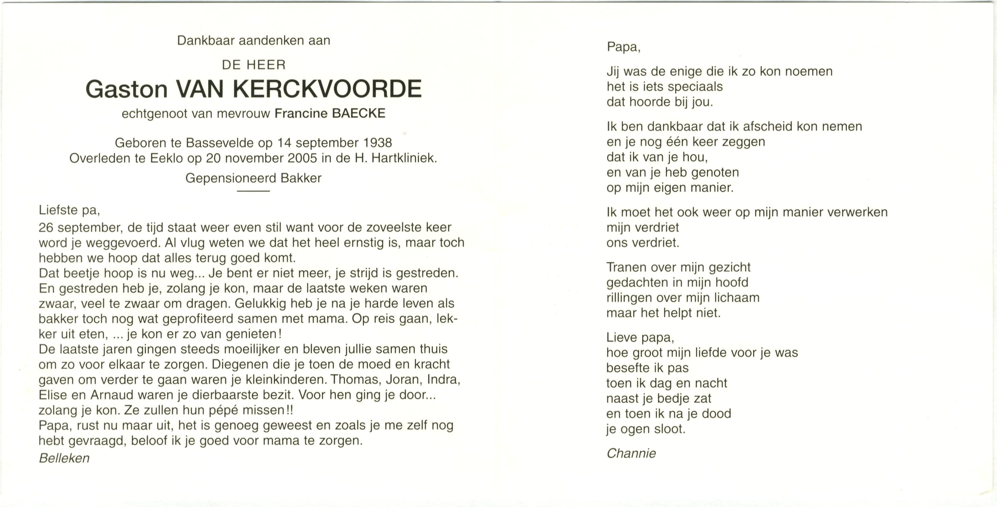 Overleden te Eeklo op 20 november 2005 in de H. Hartkliniek.