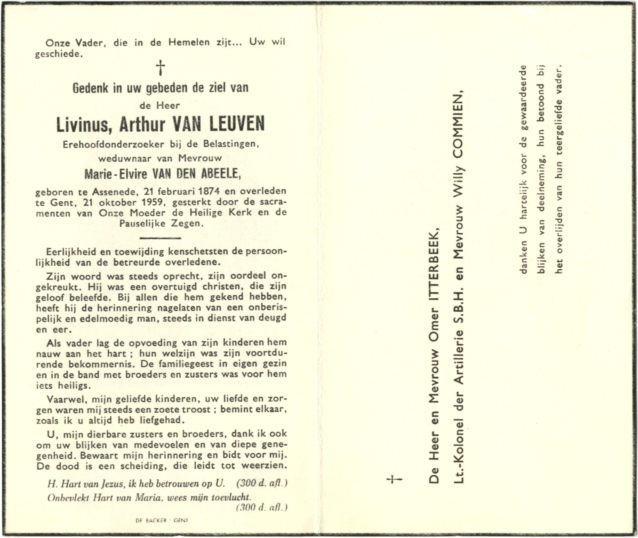 weduwnaar van Mevrouw Marie-Elvire Van den Abeele,