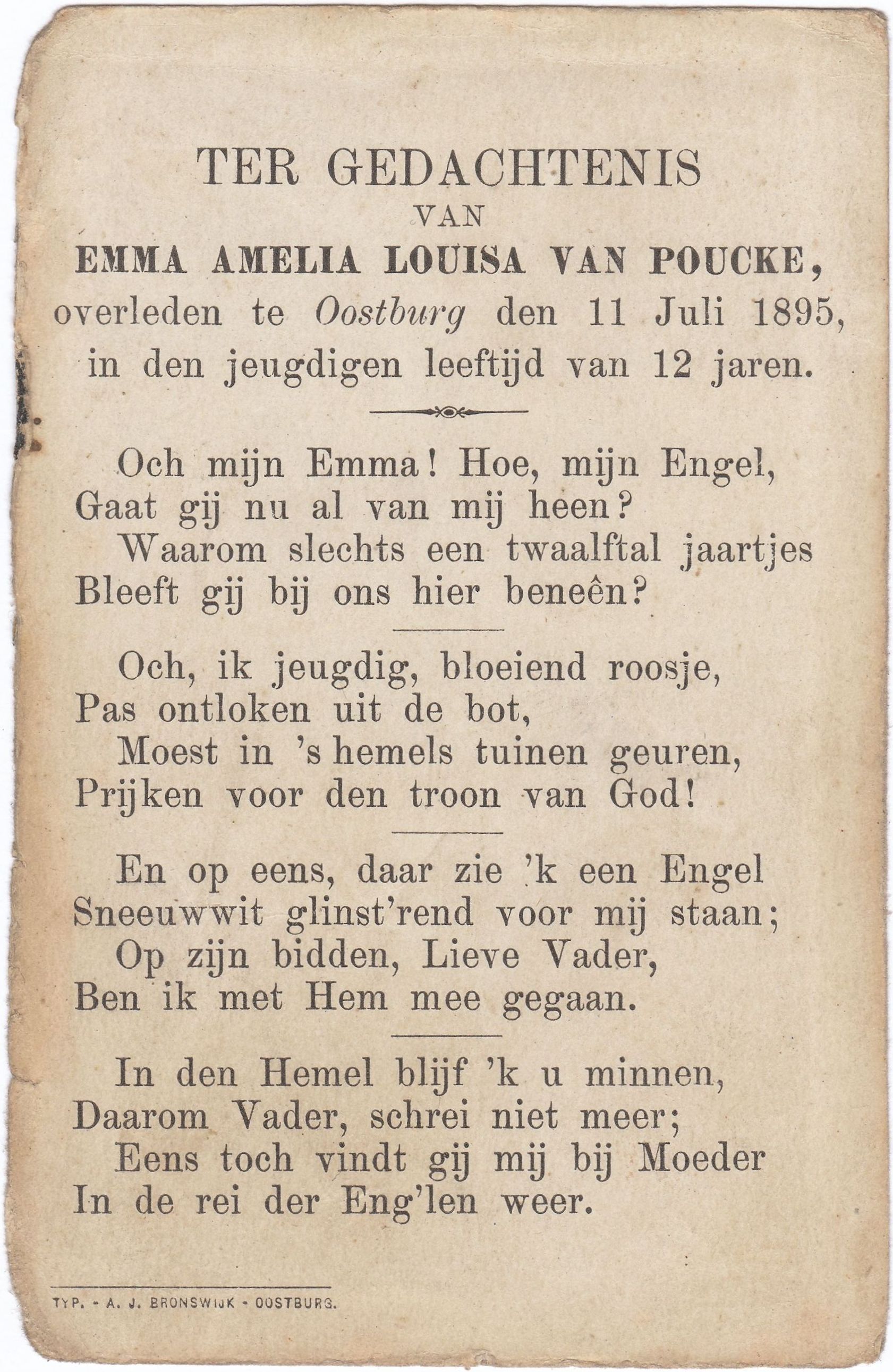 Ter Gedachtenis van Emma Amelia Louisa Van Poucke,