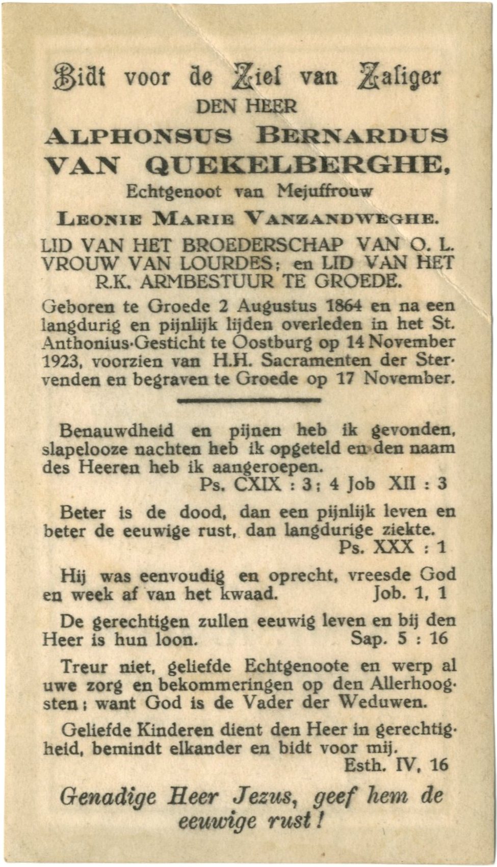 na een langdurig en pijnlijk lijden overleden in het St. Anthonius-Gesticht te Oostburg op 14 November 1923