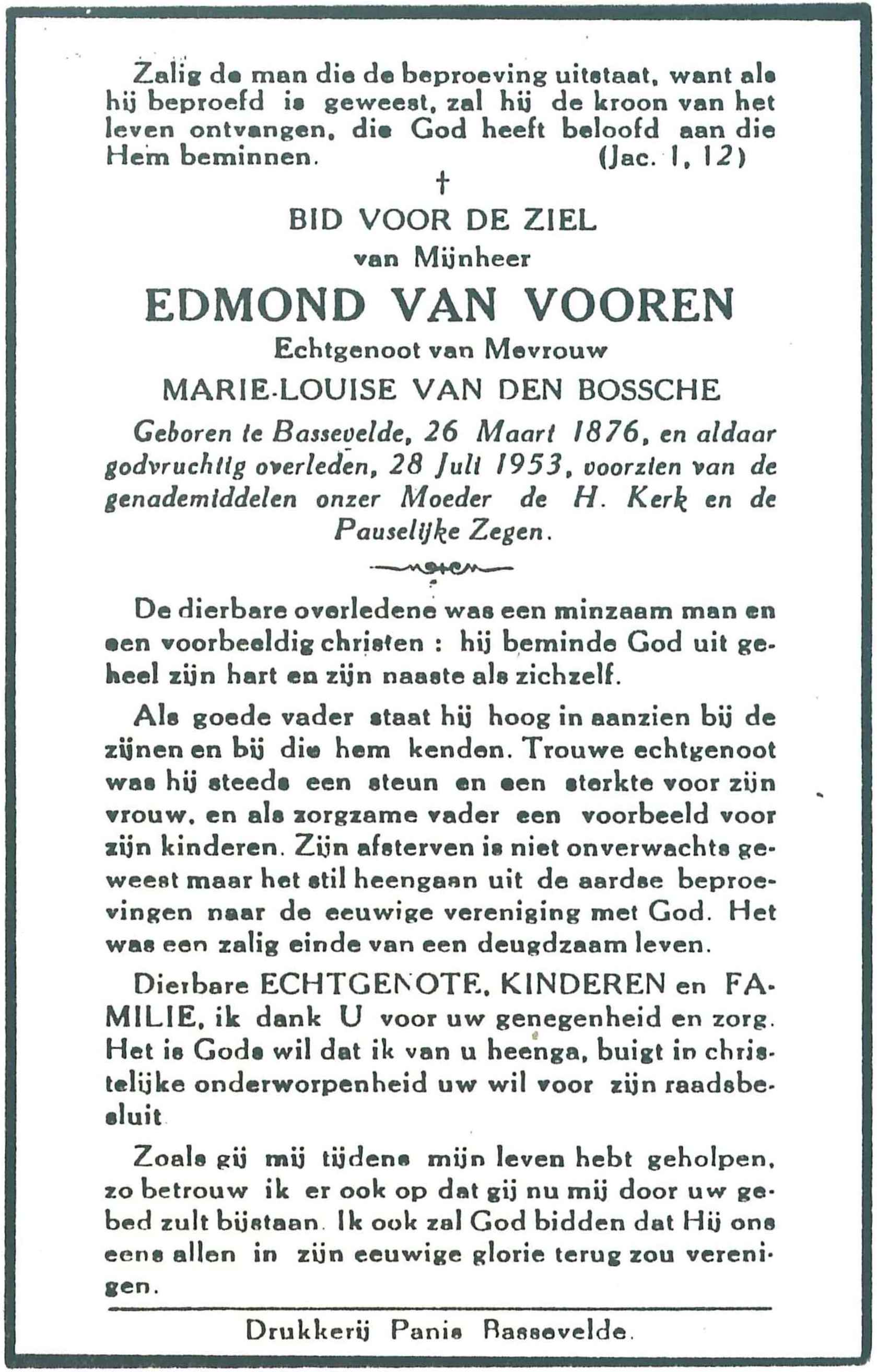 Geboren te Bassevelde, 26 Maart 1876,
