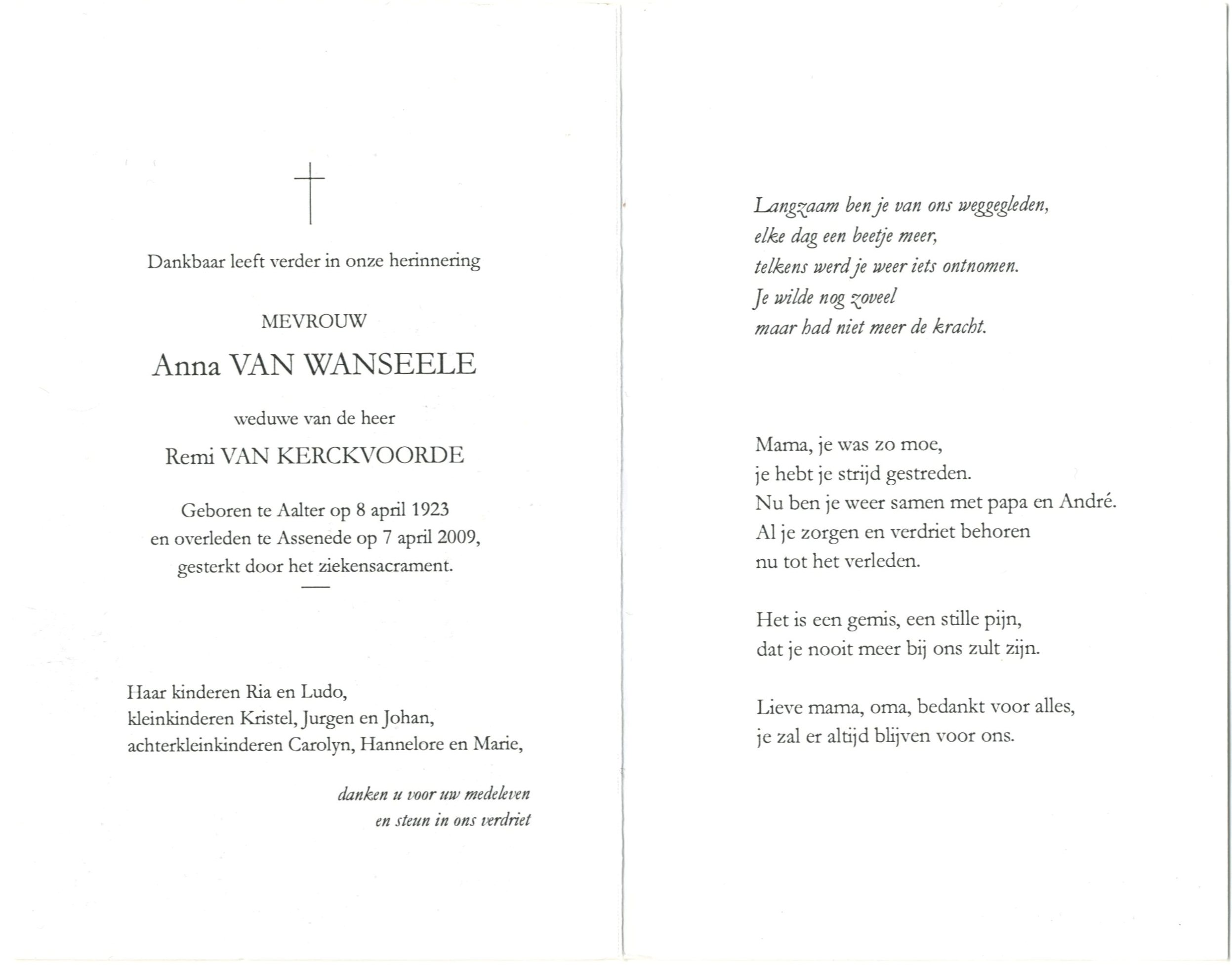 Onze beste dank voor dit aandenken aan Mevr. Leon Lambrecht, née Agnes De Clerck.