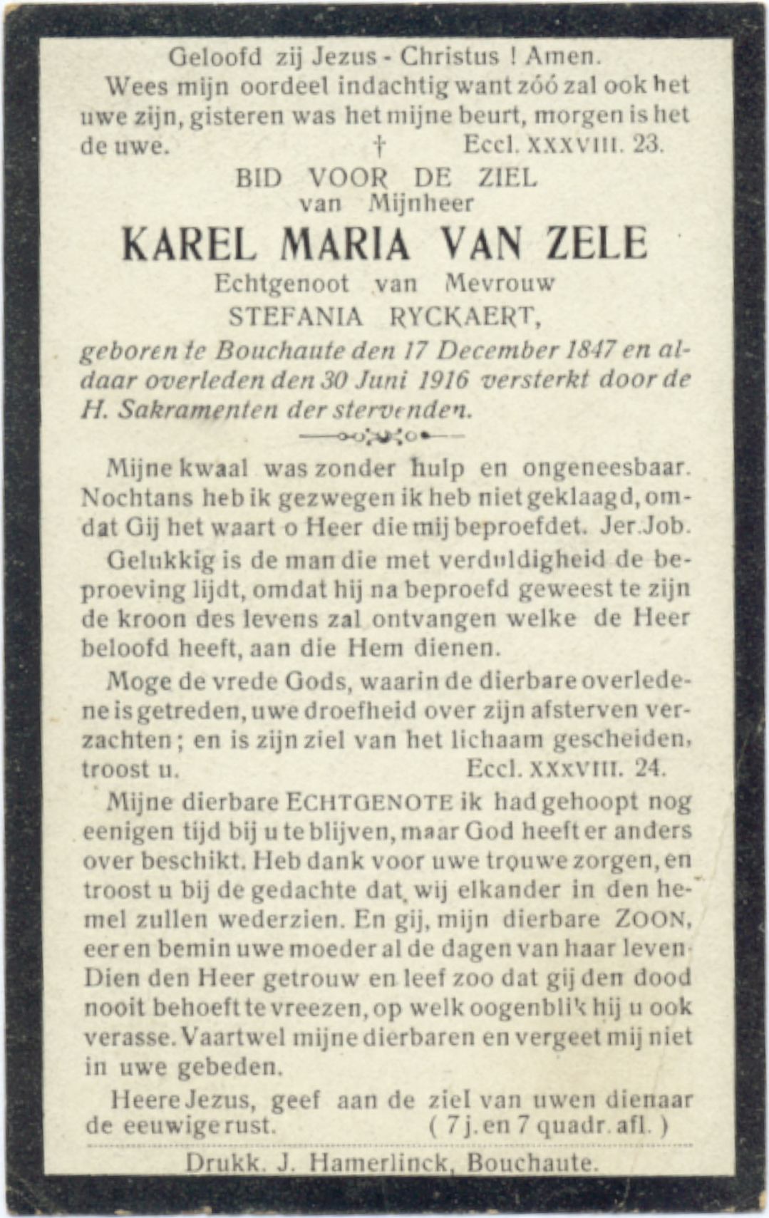 Onze beste dank voor dit aandenken aan Mevr. Fritz Ryckaert, née Nadine De Brabandere.