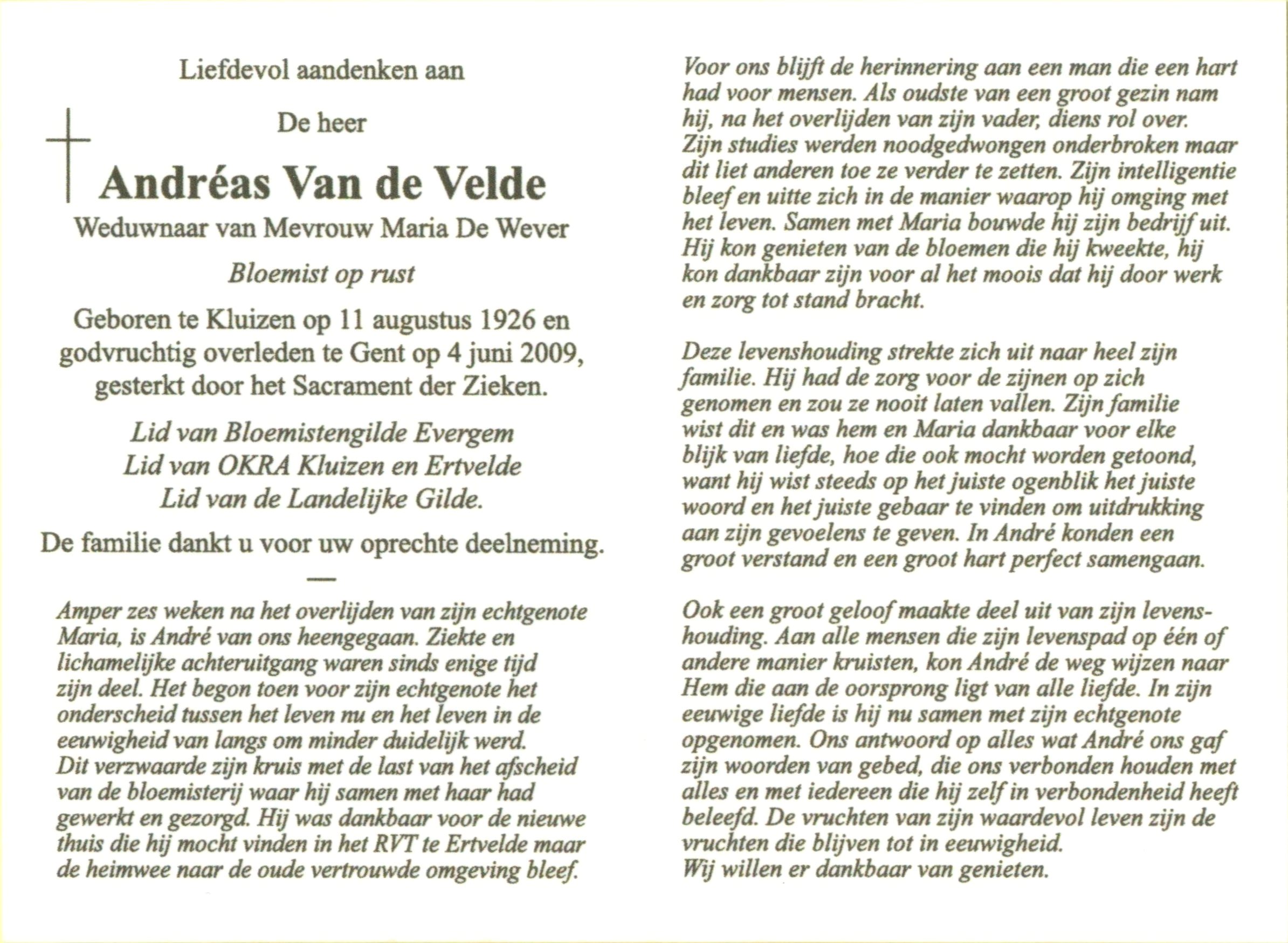 Onze beste dank voor dit aandenken aan Mevr. Leon Lambrecht, née Agnes De Clerck.