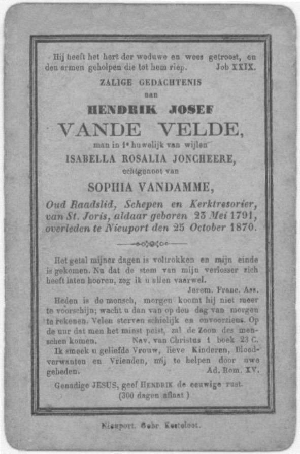 Oud Raadslid, Schepen en Kerktresorier, van St. Joris, aldaar geboren 23 Mei 1791,