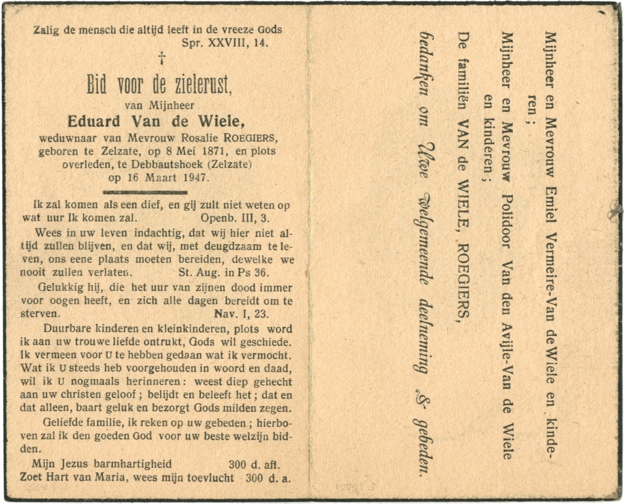 en plots overleden, te Debbautshoek (Zelzate) op 16 Maart 1947.