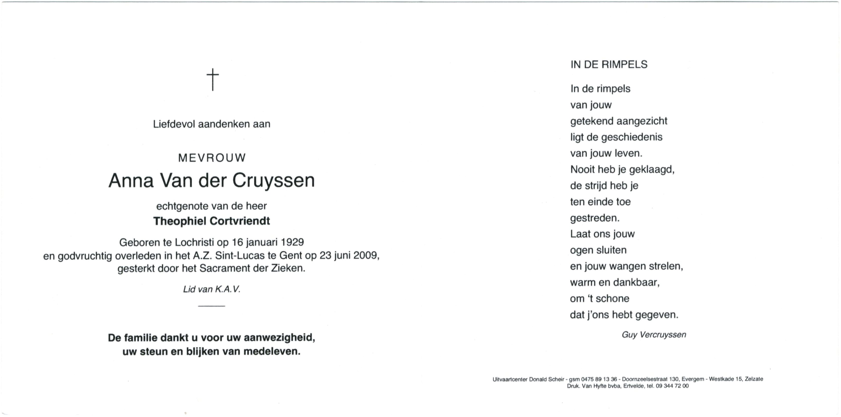 en godvruchtig overleden in het A.Z. Sint-Lucas te Gent op 23 juni 2009.