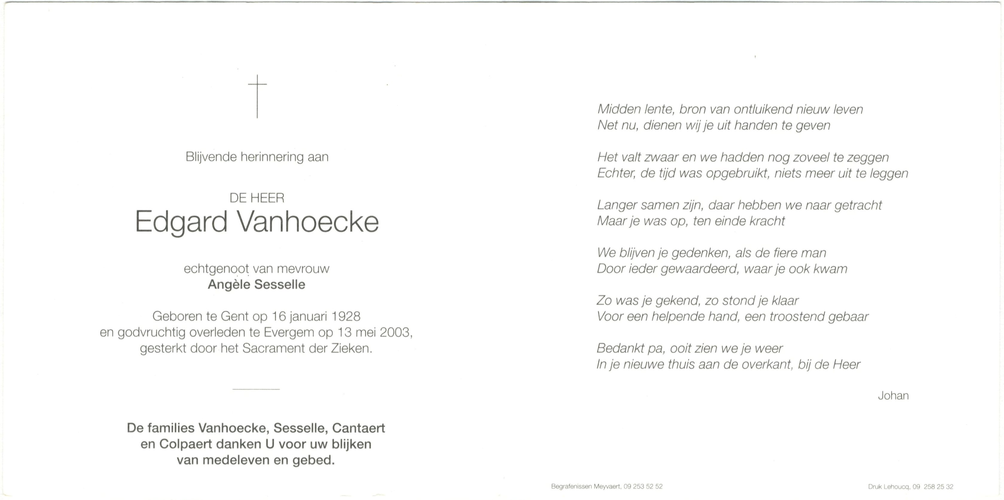 en godvruchtig overleden te Evergem op 13 mei 2003.