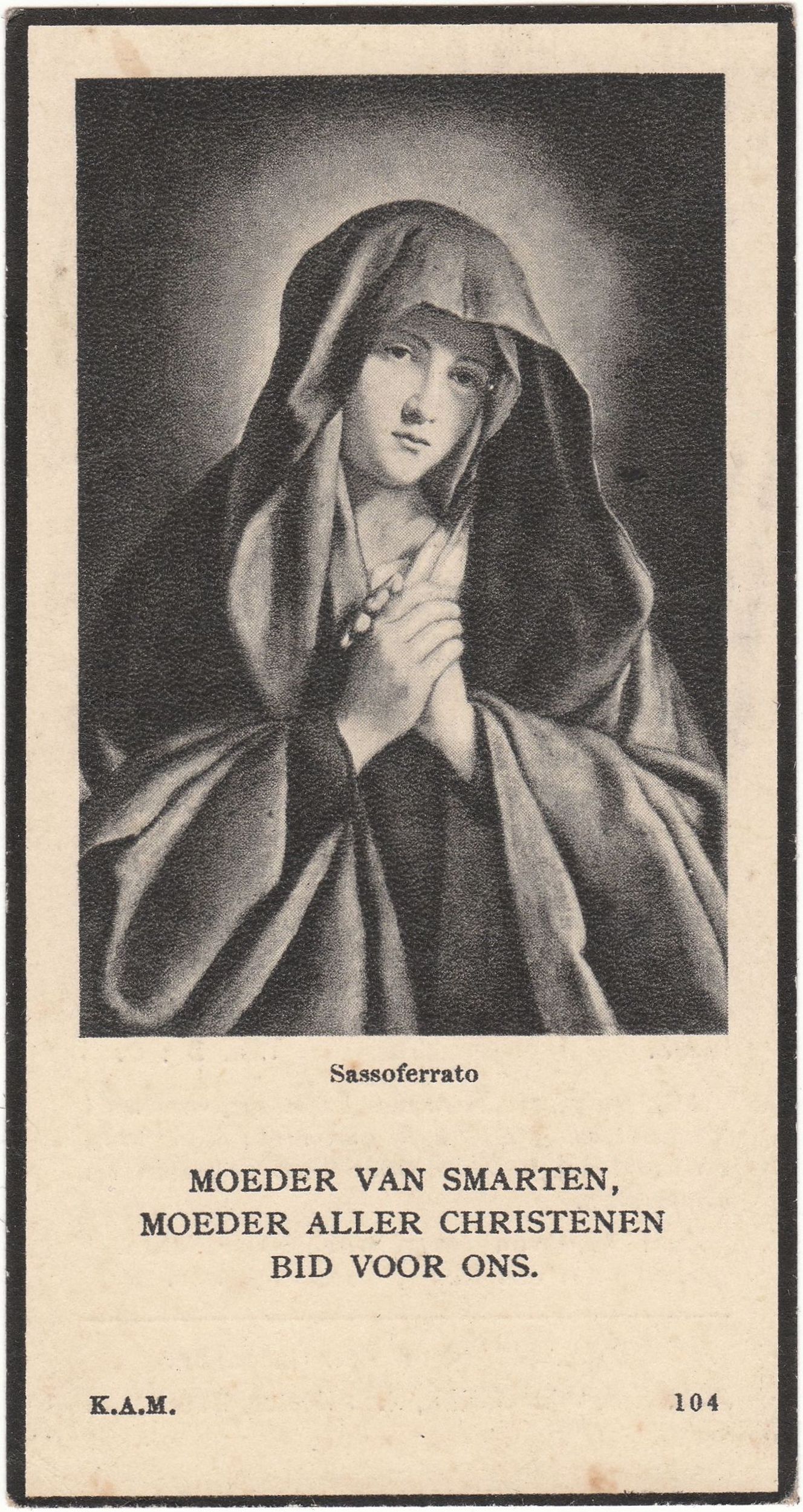 Onze beste dank voor dit aandenken aan Mevr. Hubert Dusarduyn, née Marie-Aimée Van Damme.