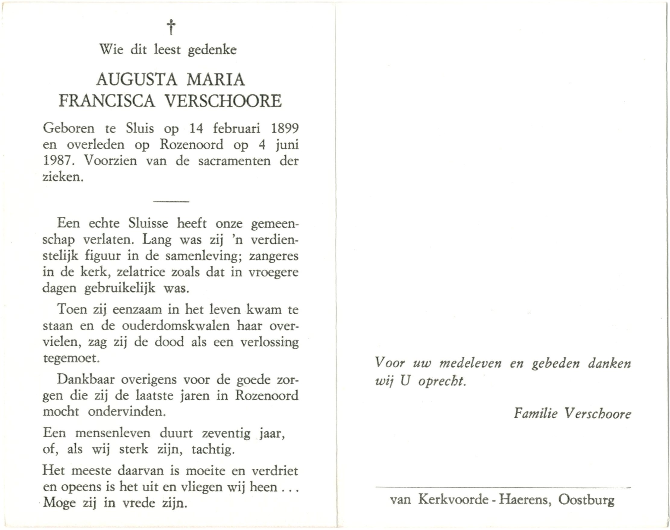 Geboren te Sluis op 14 februari 1899en overleden op Rozenoord op 4 juni 1987. Onze beste dank voor dit aandenken aan L.T.