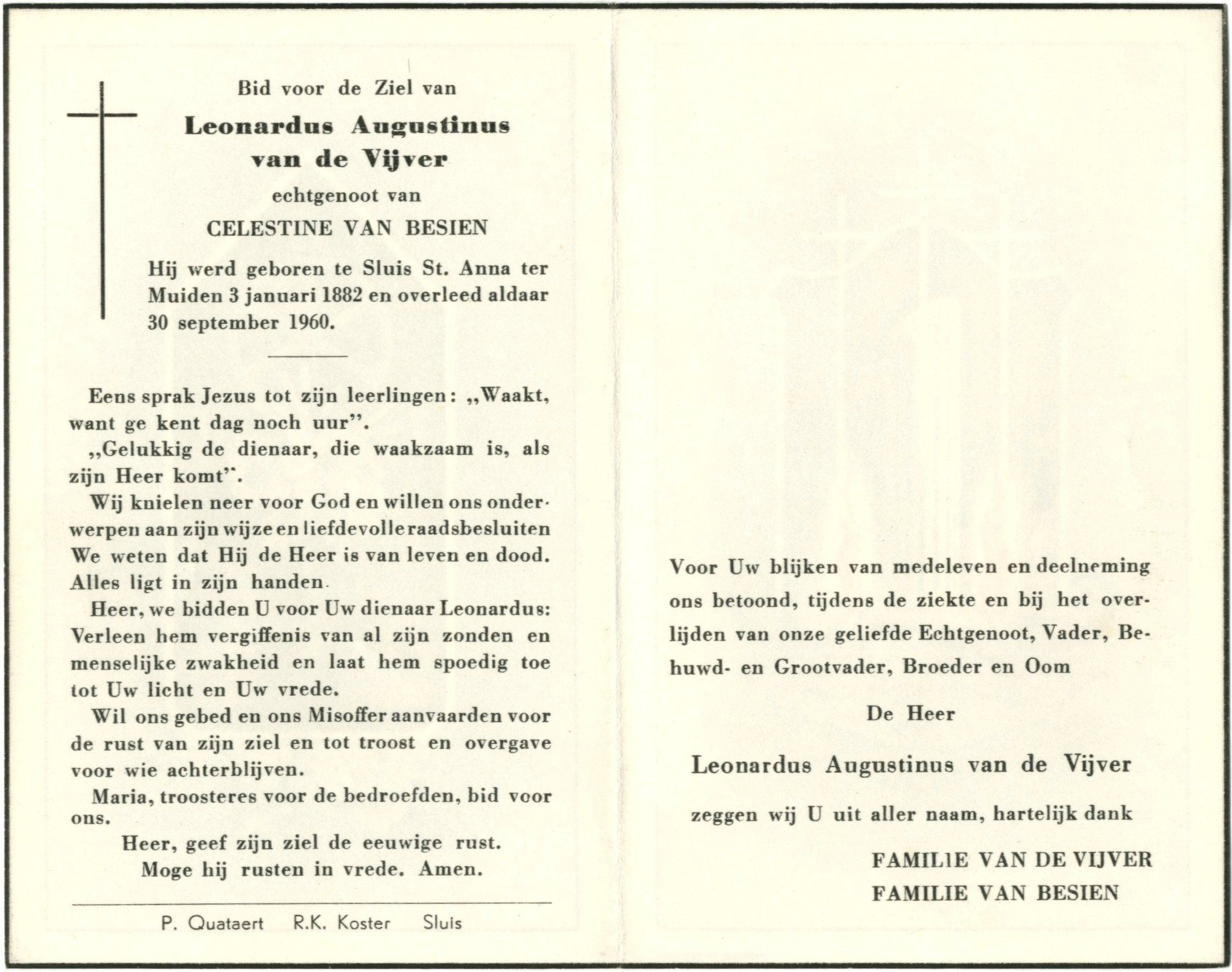 Hij werd geboren te Sluis St. Anna ter Muiden 3 januari 1882 en