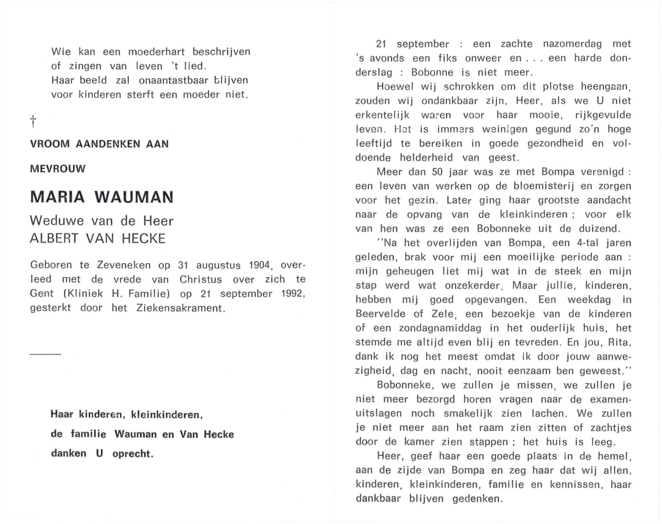 overleed met de vrede van Christus over zich te Gent (Kliniek H. Familie) op 21 september 1992.