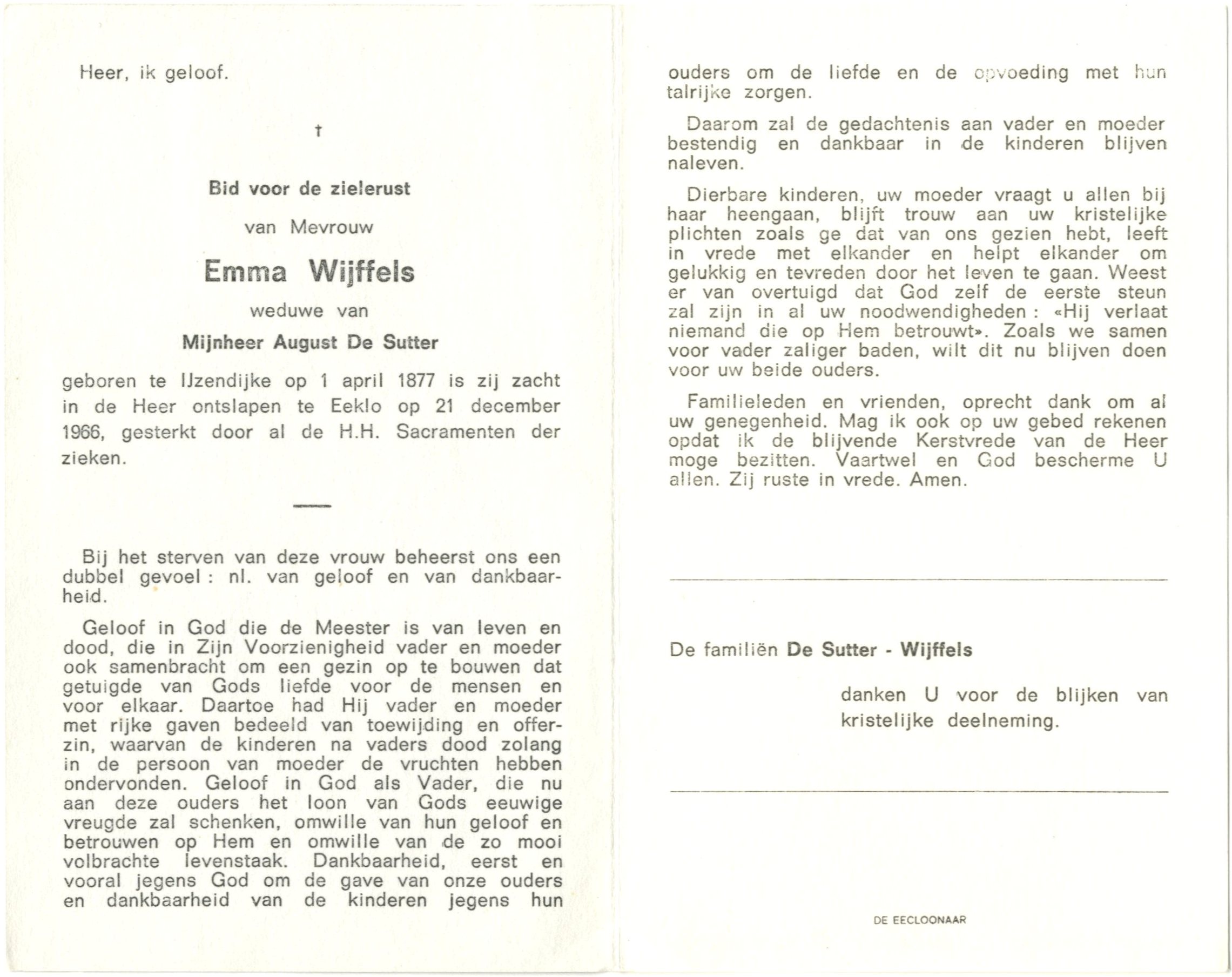 is zij zacht in de Heer ontslapen te Eeklo op 21 december 1966.
