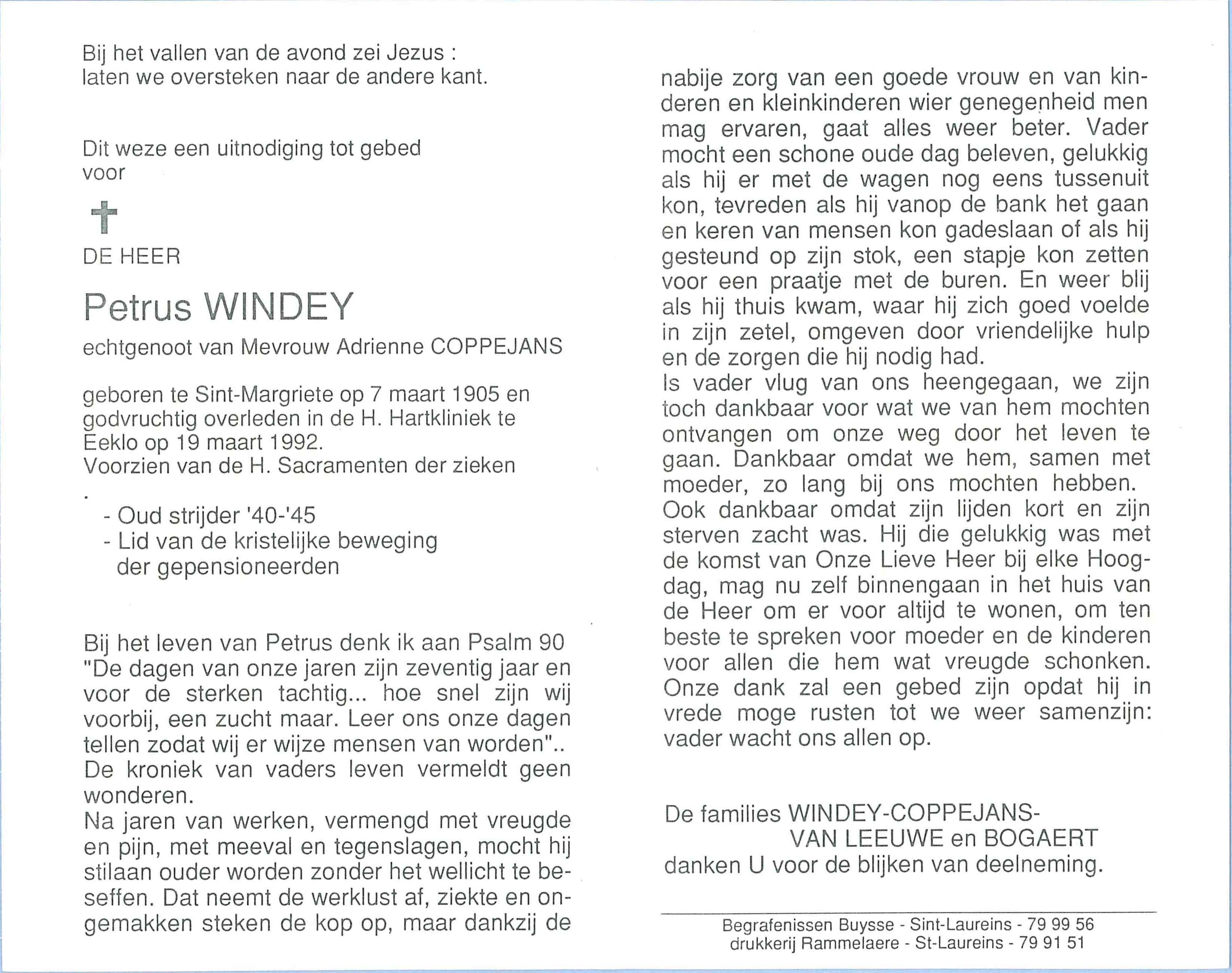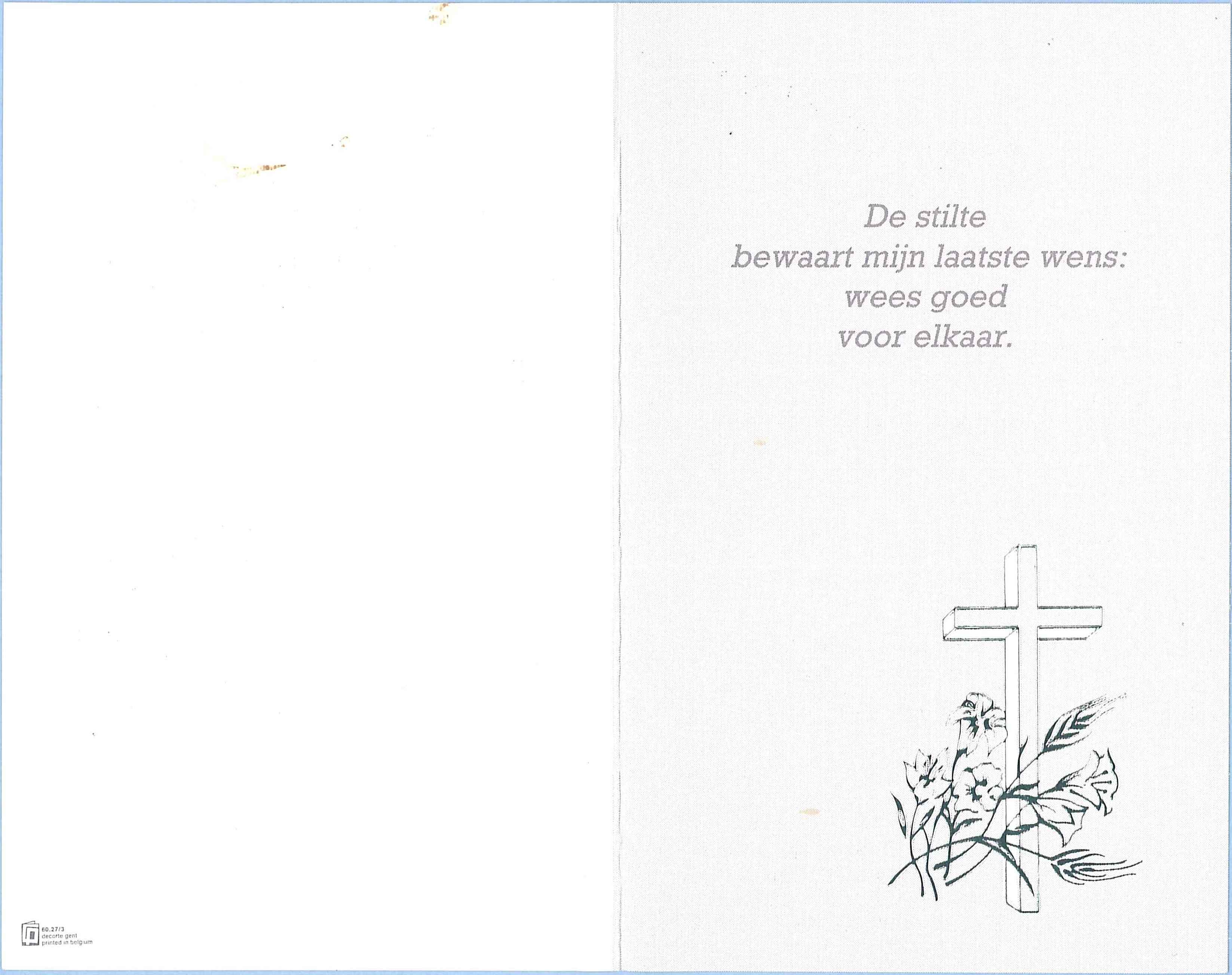 godvruchtig overleden in de H. Hartkliniek te Eeklo op 19 maart 1992.