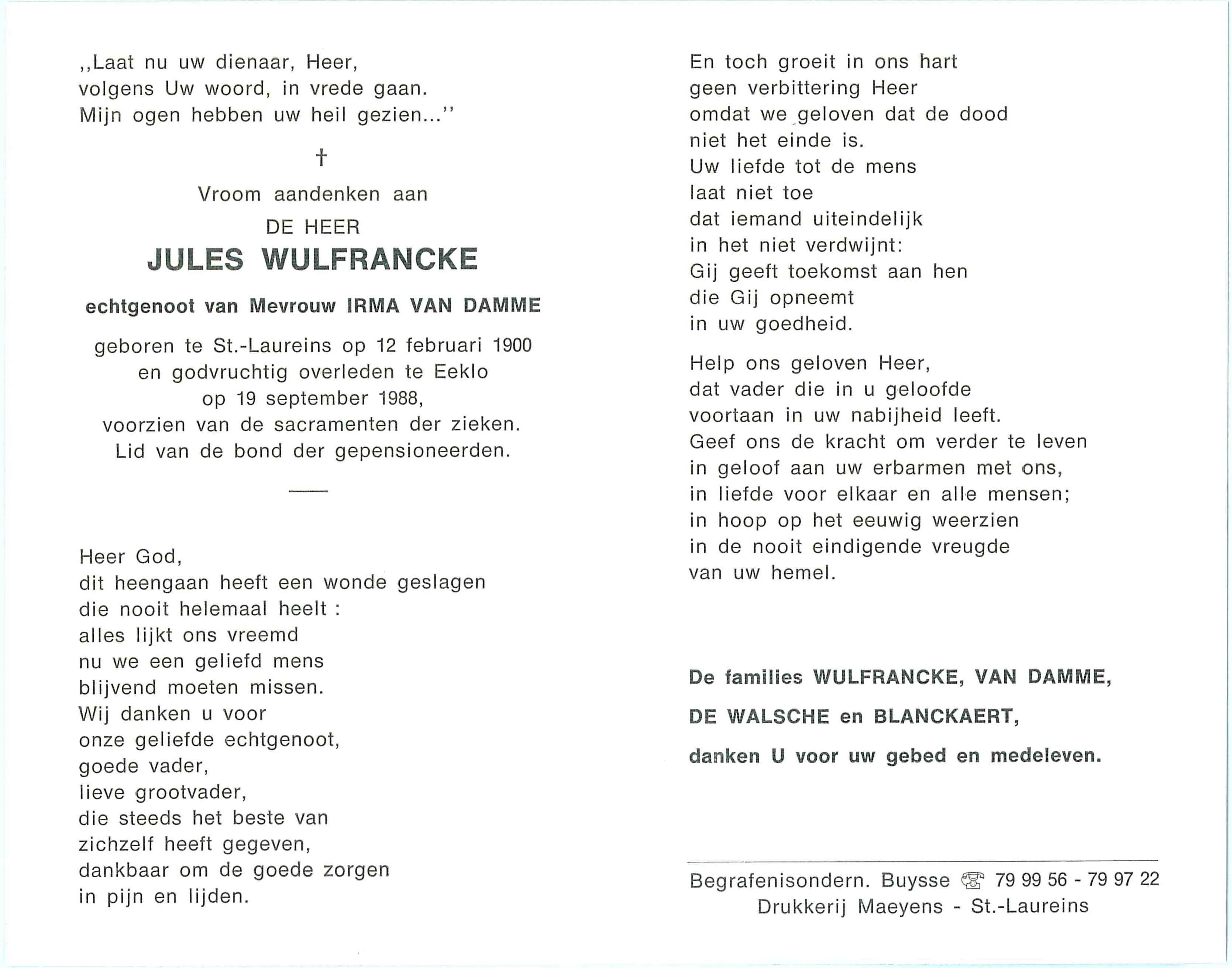 en godvruchtig overleden te Eeklo op 19 september 1988.