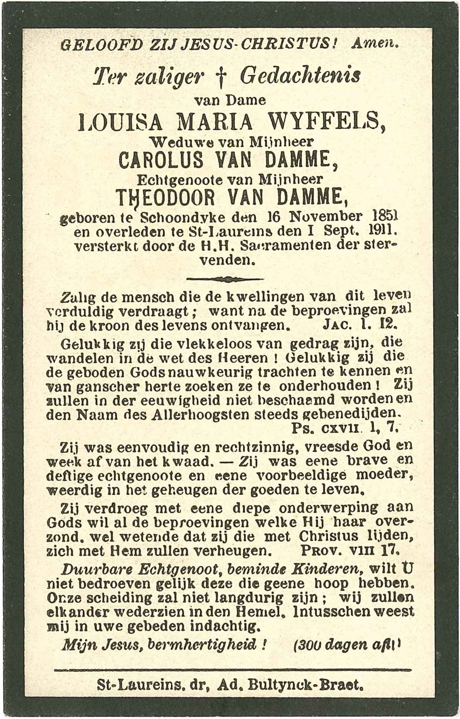 Onze beste dank voor dit aandenken aan Mevr. Oscar Maesen, née Rose-Anne Van Damme.