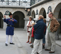 In the Crypt on the Place des Martyrs in Brussels. Mr. Adrien Lenaerts explains. |