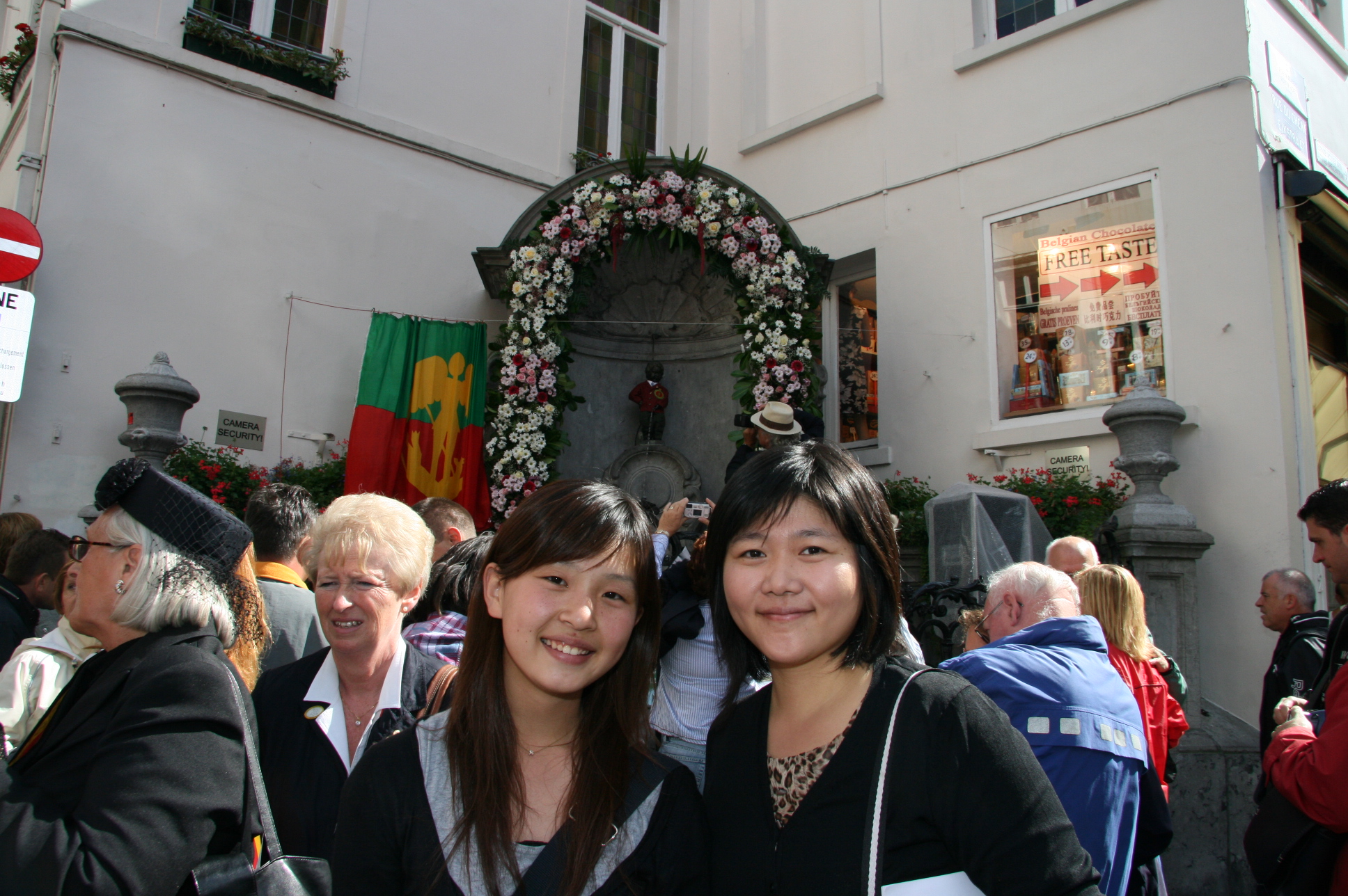 They become friends with Manneken Pis looking on.