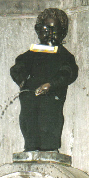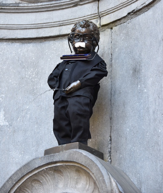 | Manneken Pis vêtu de son costume de Toots. Photo du 22 août 2016, le jour de son décès. |