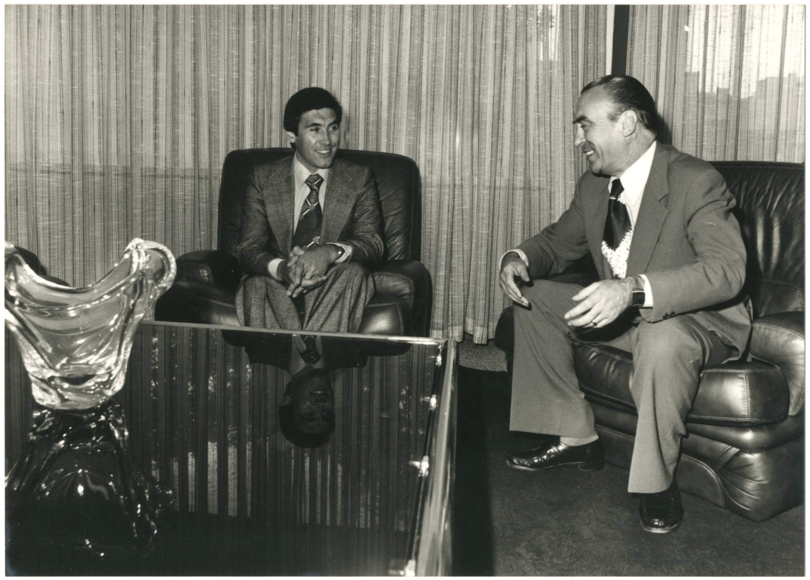 Eddy Merckx en conversation avec Léon Defosset,