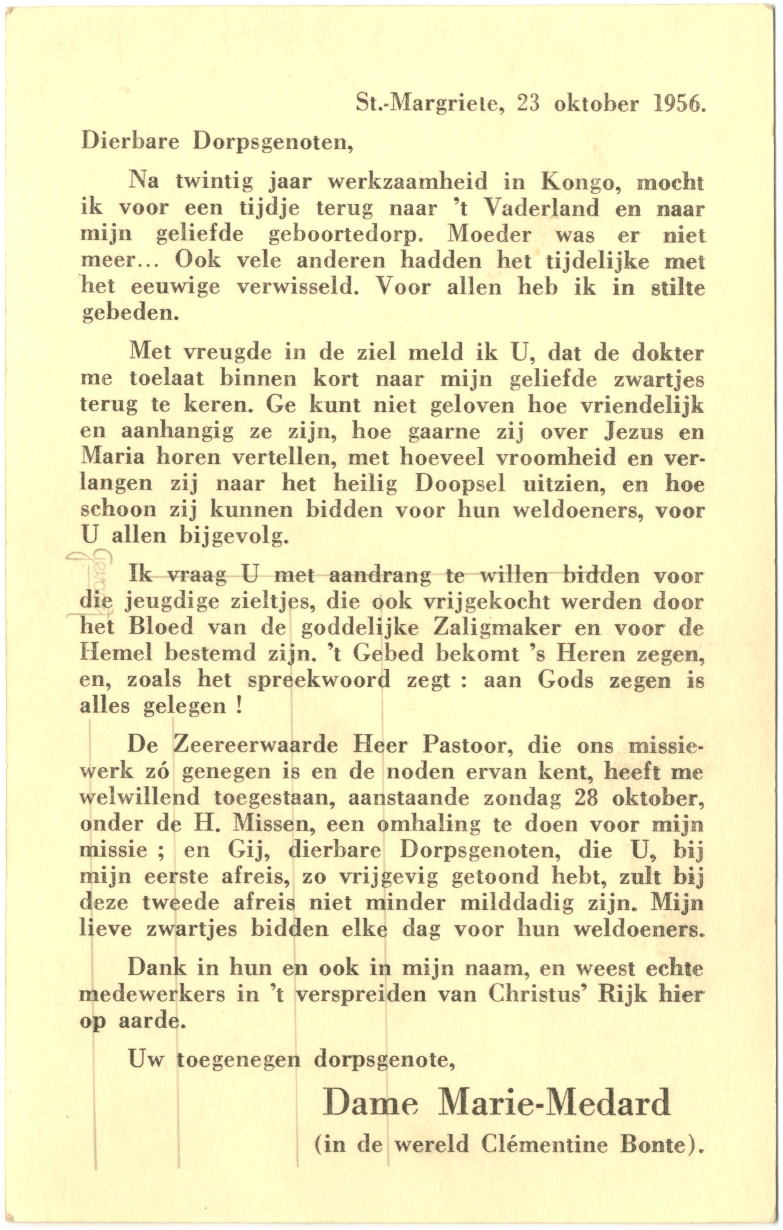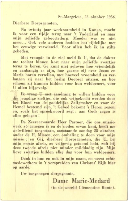 «Mijn lieve zwartjes bidden elke dag voor hun weldoeners».