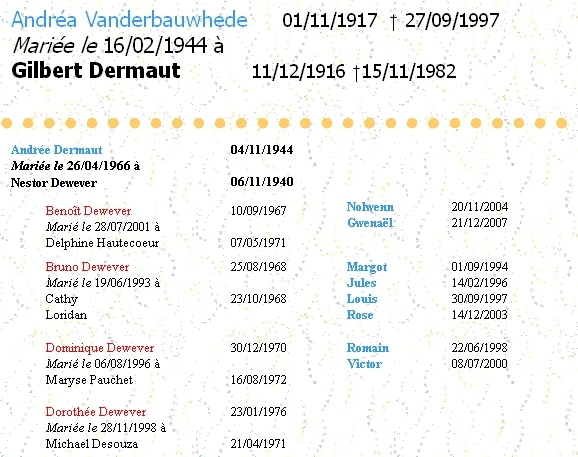possible que les familles Vanderbauwhede et Dermaut se connaissaient