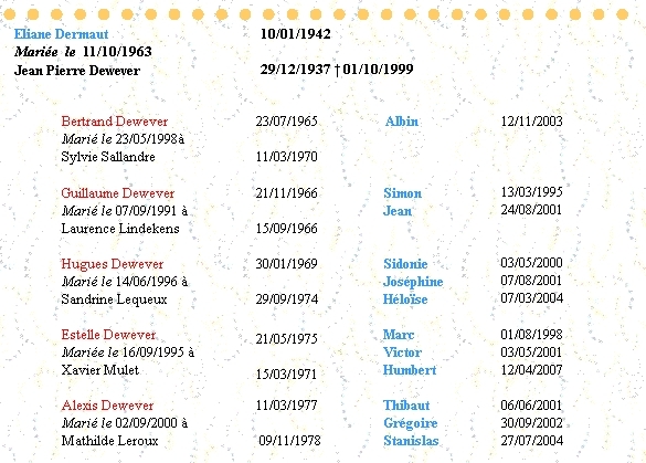 Mariée le 11/10/1963 à Jean Pierre Dewever (° 29/12/1937 - † 1/10/1999)