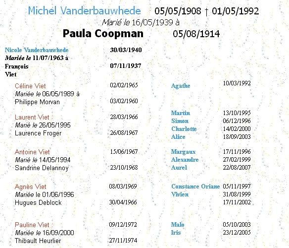 Mariée le 11/7/1963 à François Viet (° 7/11/1937)