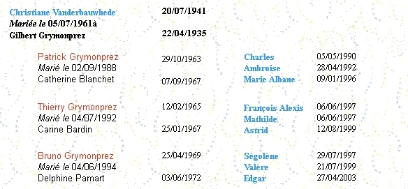 Mariée le 5/7/1961 à Gilbert Grymonprez (° 22/4/1935)