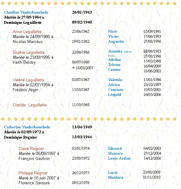 Mariée le 27/5/1964 à Dominique Leguillette (° 9/2/1940)