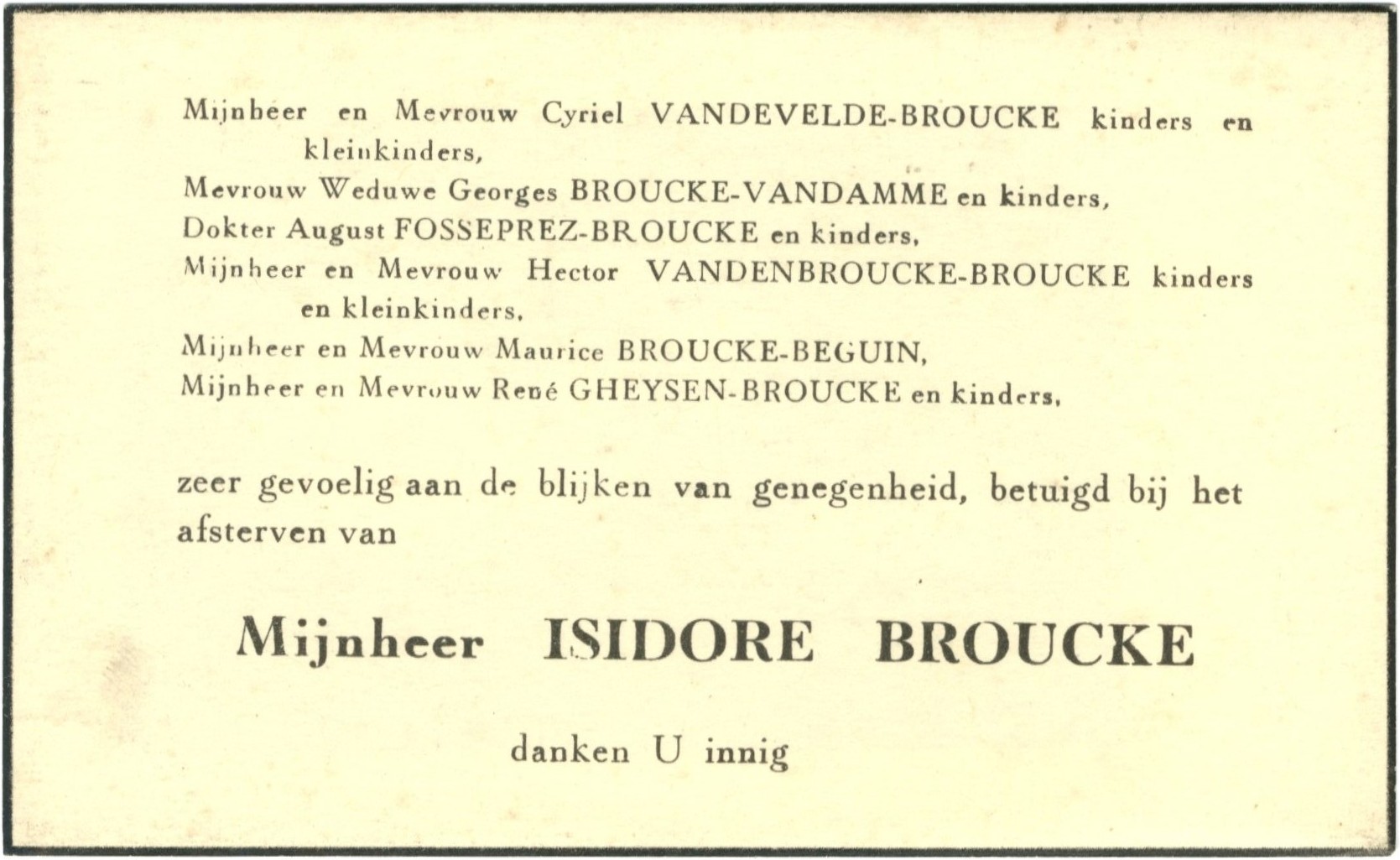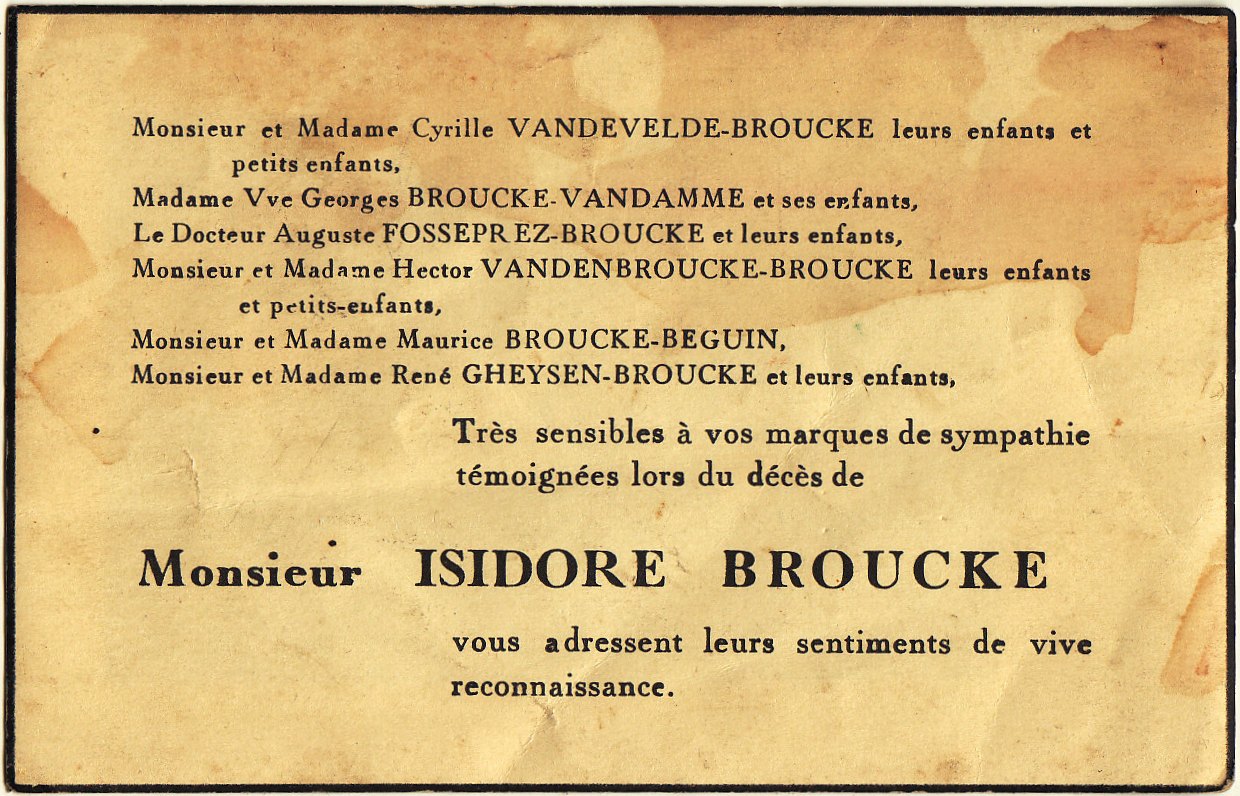 Beste dank voor deze bedankingskaartjes. Het nederlandstalige komt uit de nalatenschap van Maurice Noë en Marie Elisabeth Van Damme en wij danken heel bijzonder Mevr. Marie-Christine Vandevelde voor de franstalige versie.