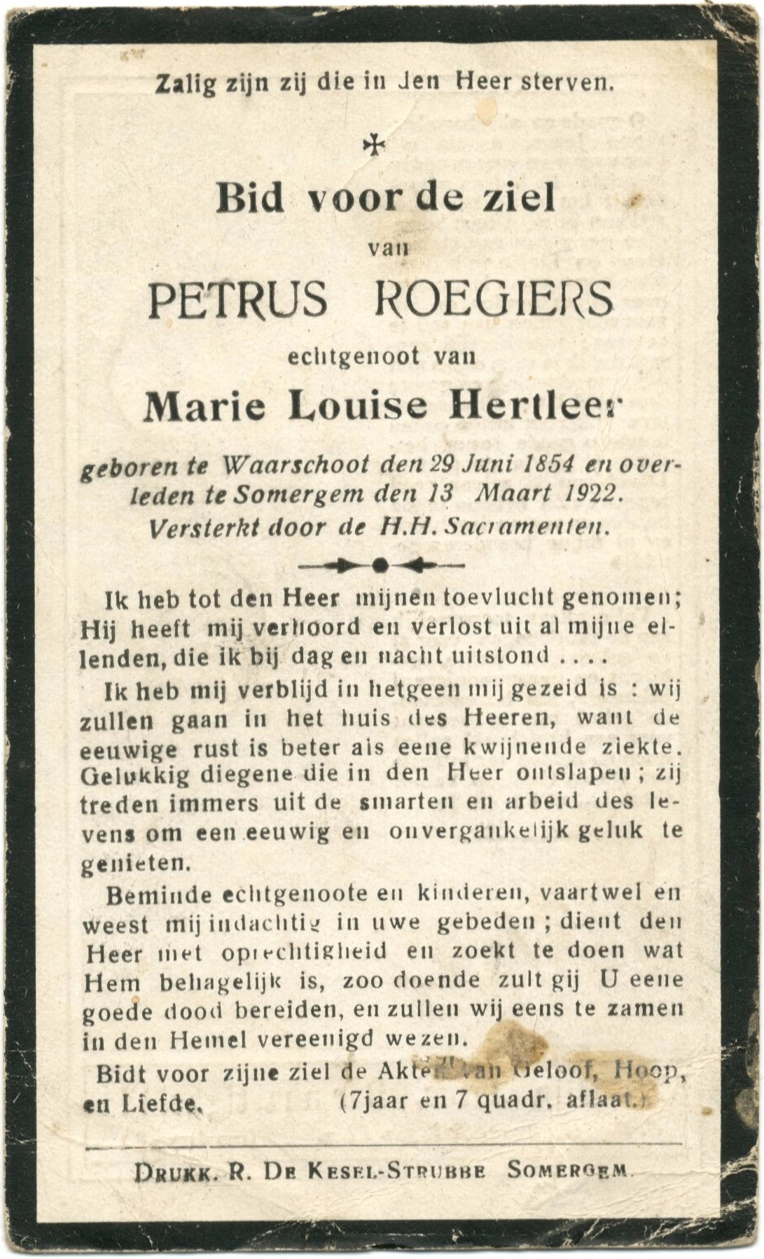 Raes, Leonie Marie (Waarschoot 9/2/1868 - id 3/10/1943)w. Roegiers, Charles-Louis