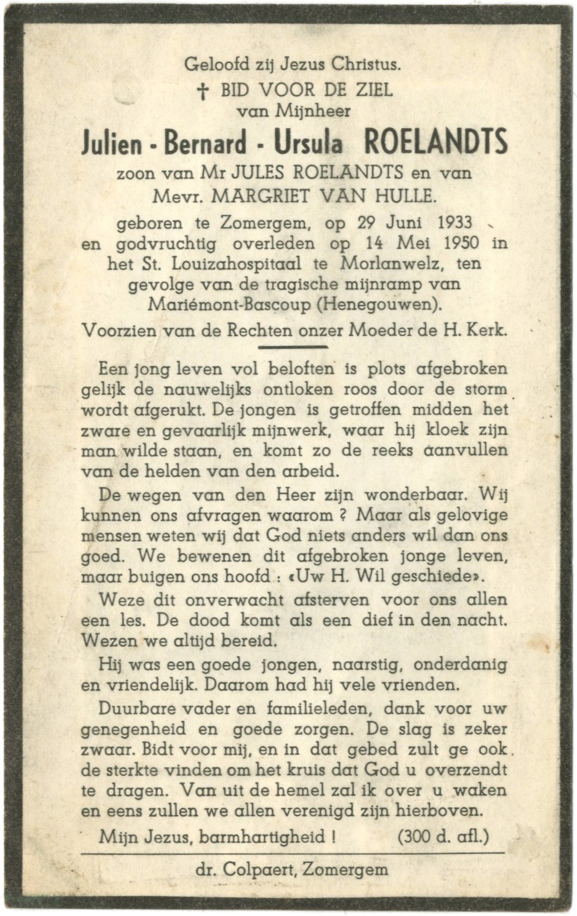 Rasschaert, Clement Roger (Wetteren 12/1/1931 - id 1/2/1949 ) fs Rasschaert, Abdon & Van Caelenberge, Alice