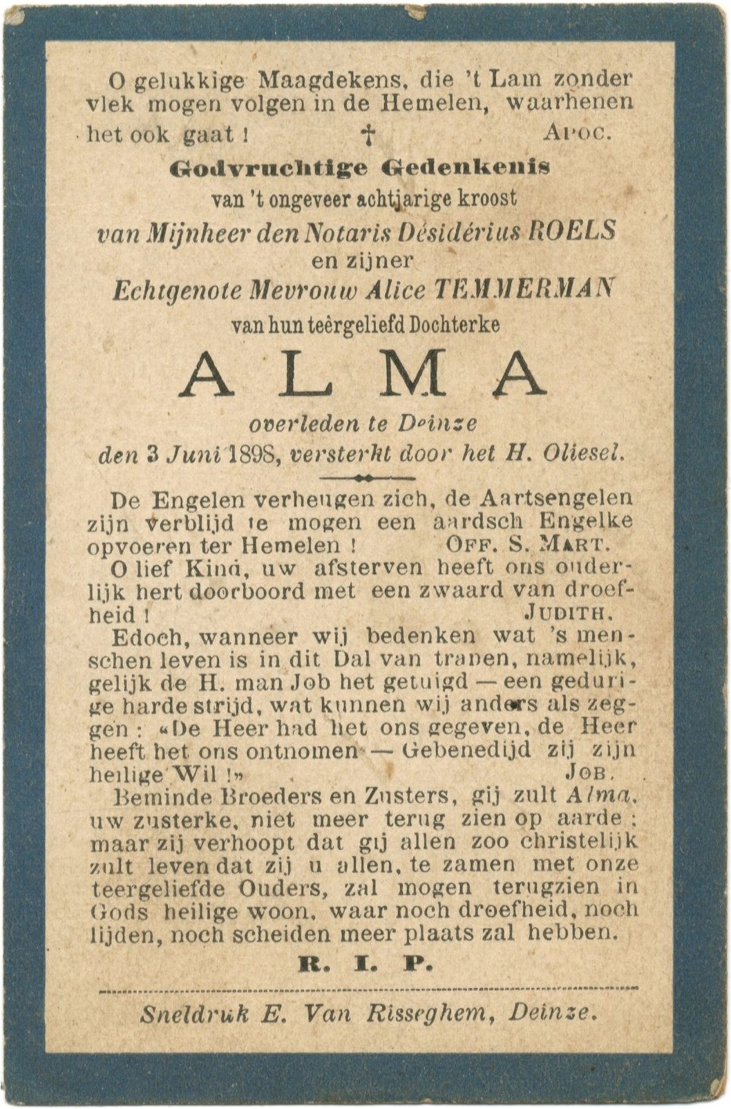 Remue, Constantin (° Baaigem - + Balegem 4/8/1888, oud 68 j.) w. Haerens, Francisca; De Smet, Coleta;