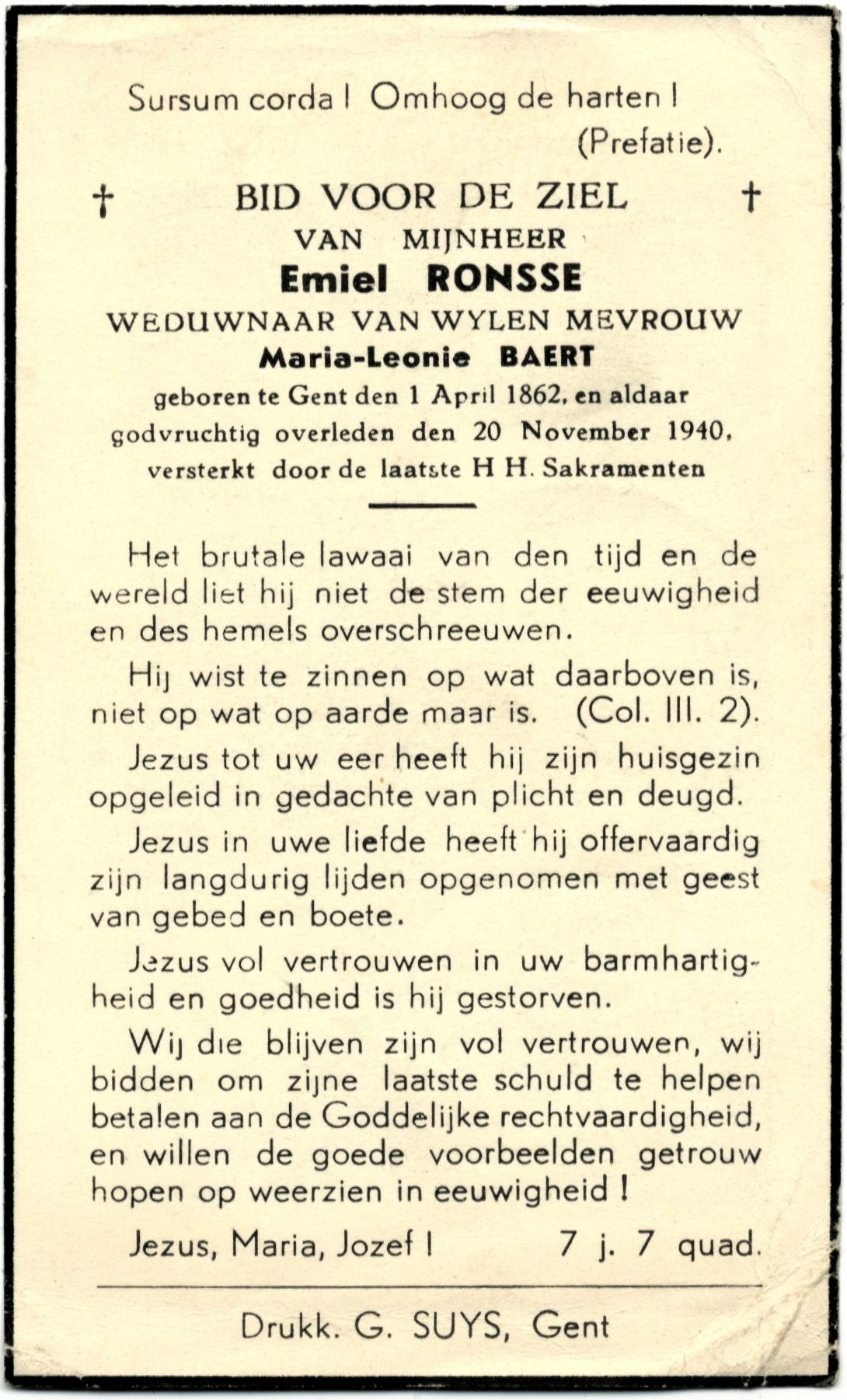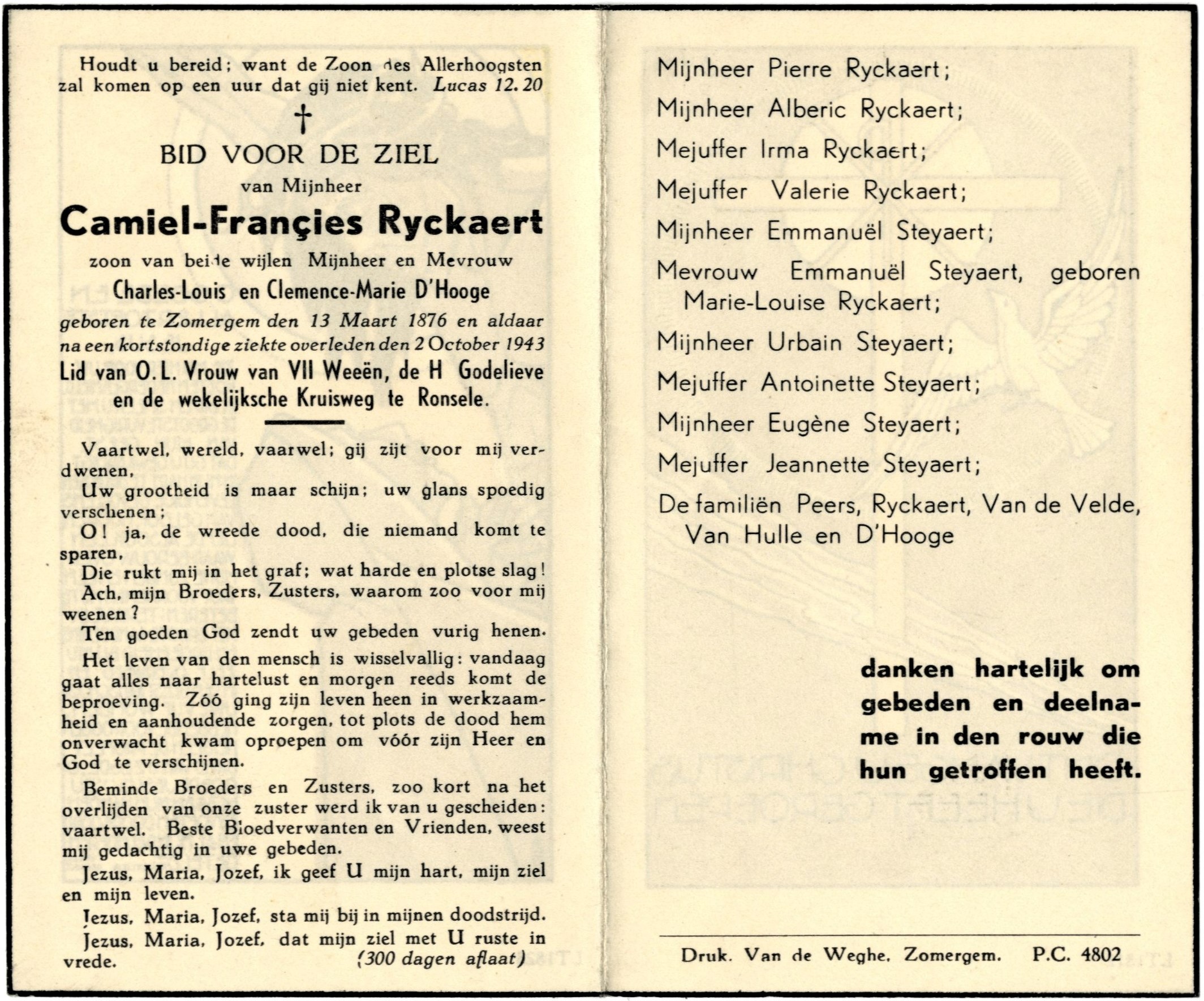 Ryckaert, Petrus (Ertvelde 28/5/1890 - Gent 5/4/1943) e. De Muynck, Clemence