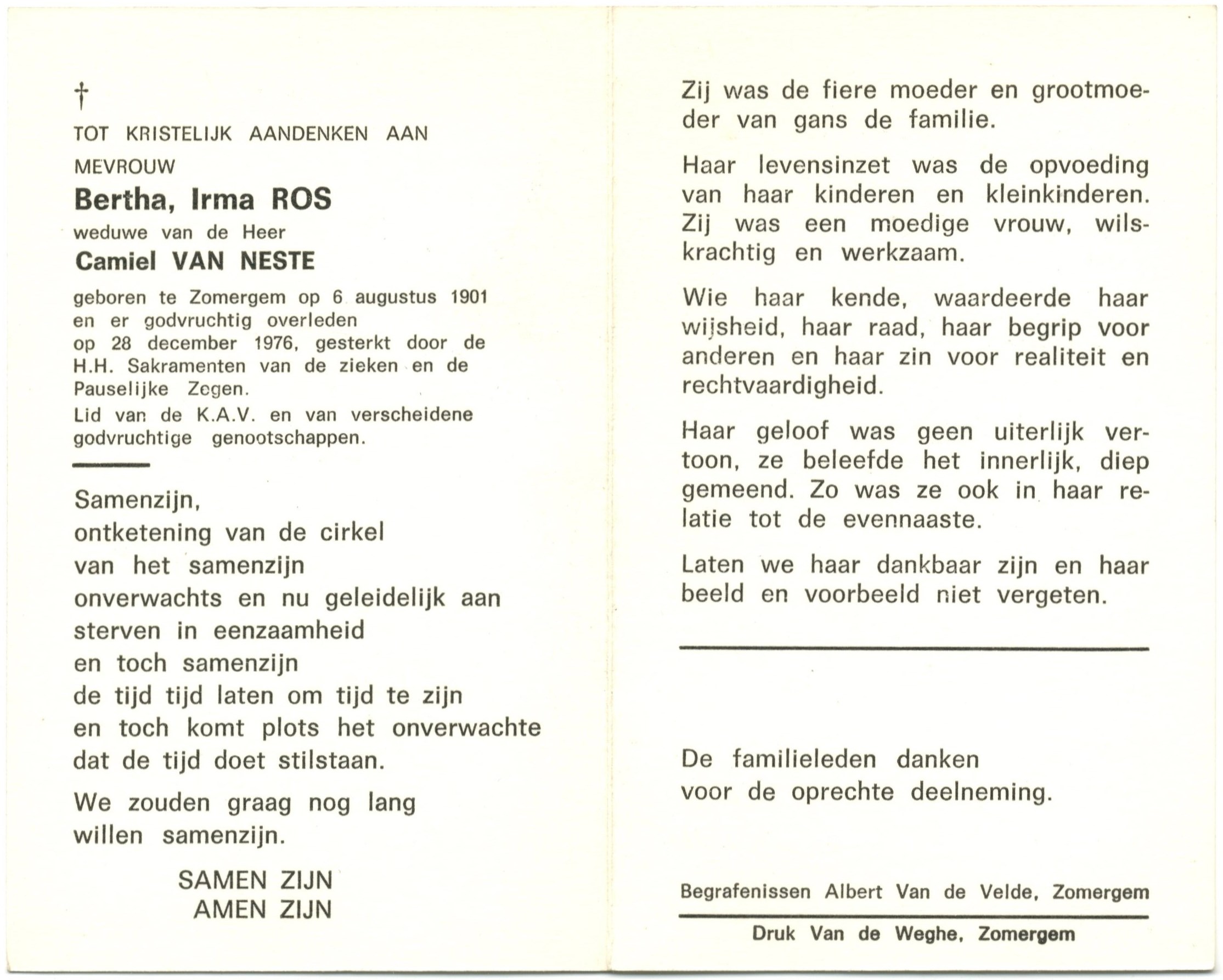Regelbrugge, Martha (Eeklo 26/9/1922 - id 13/2/2015) w. Van Zele, August