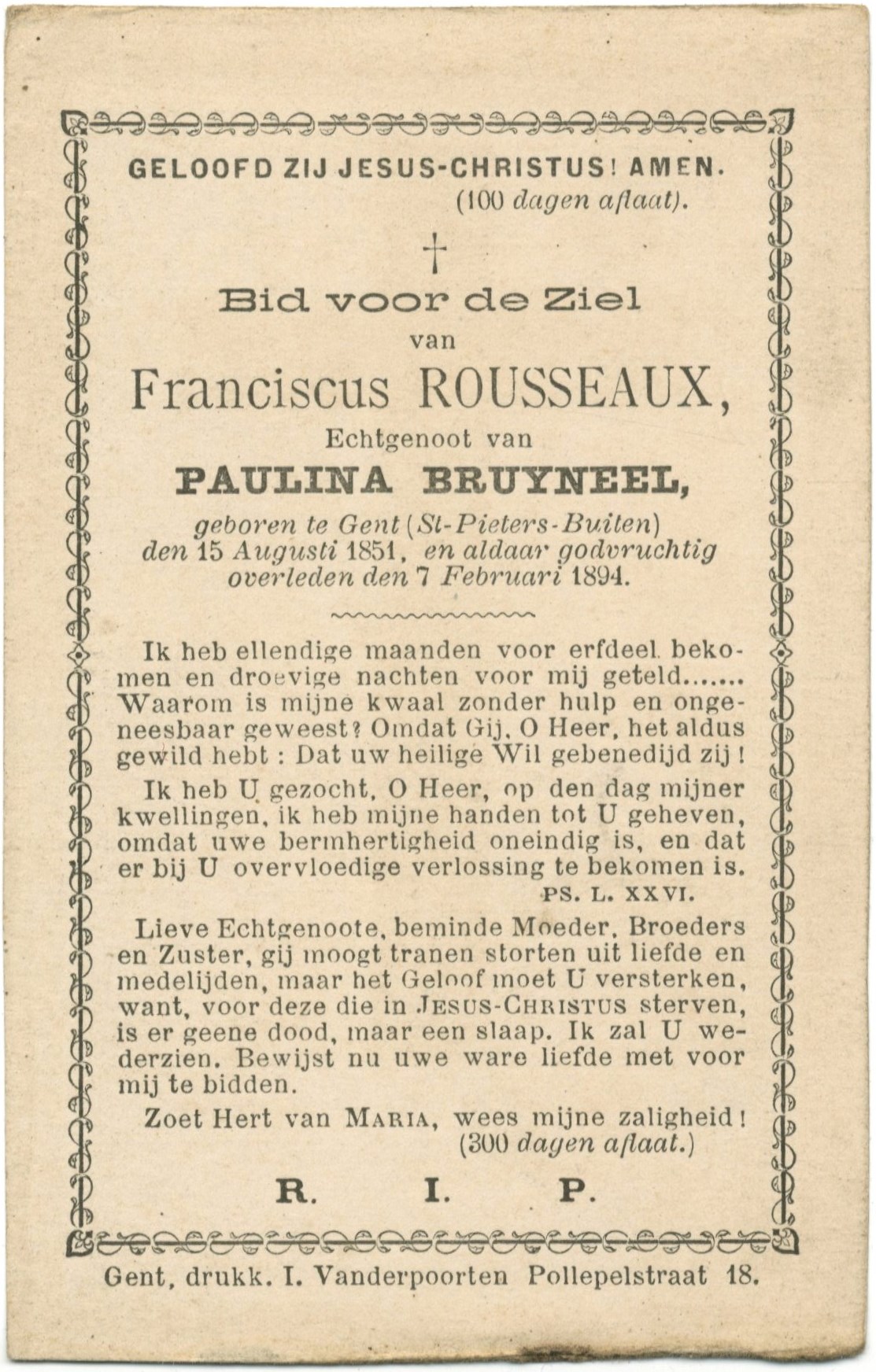 Rawoens, Petrus-Joannes (Bavegem 23/12/1853 - Gent 4/6/1924) e. De Geyter, Clementina - Ghislena