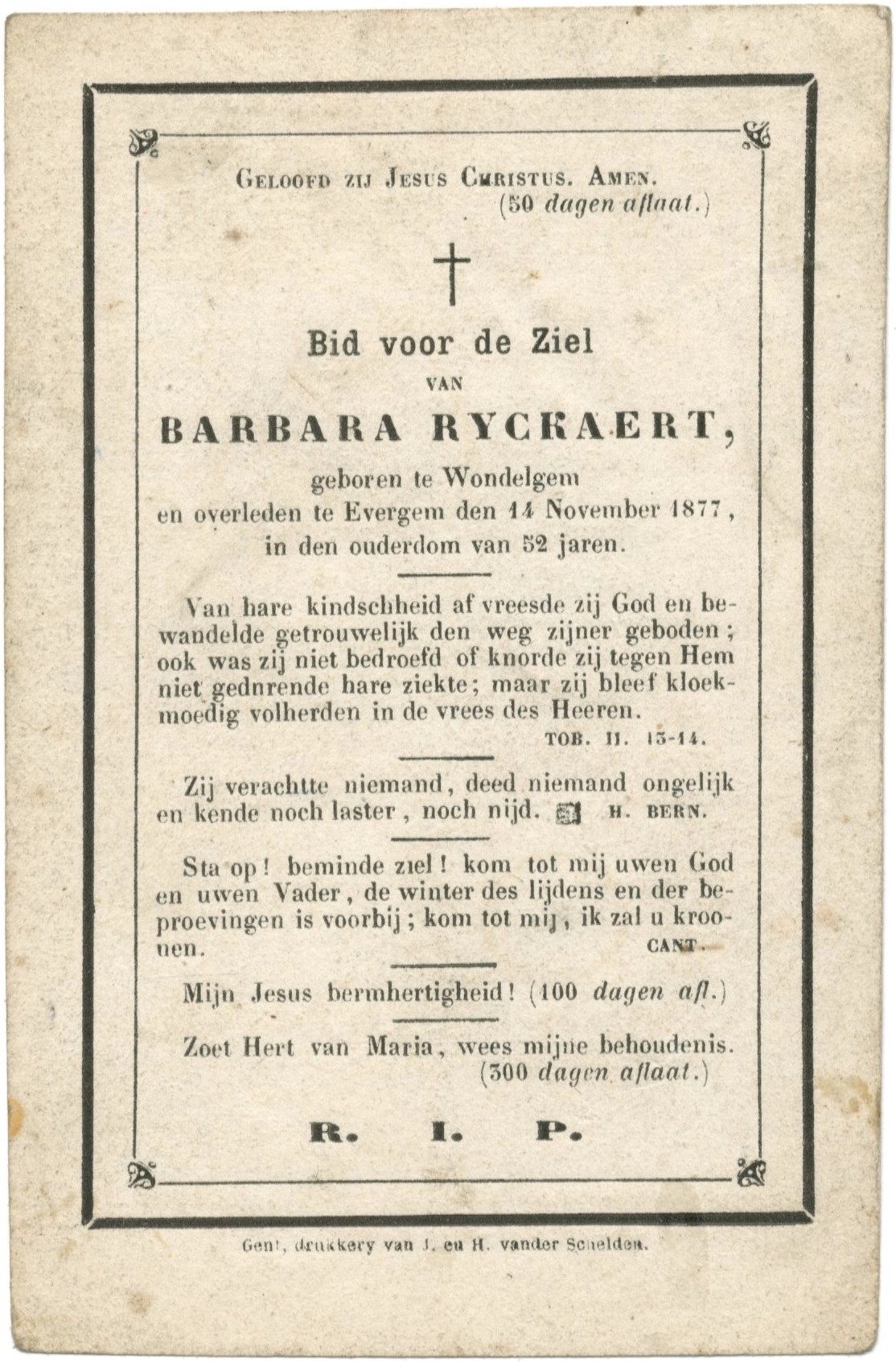 Ryckaert, Jan Baptista (Oostwinkel 16/12/1826 - id 3/11/1888) fs Ryckaert, Petrus Joannes & De Geetere,