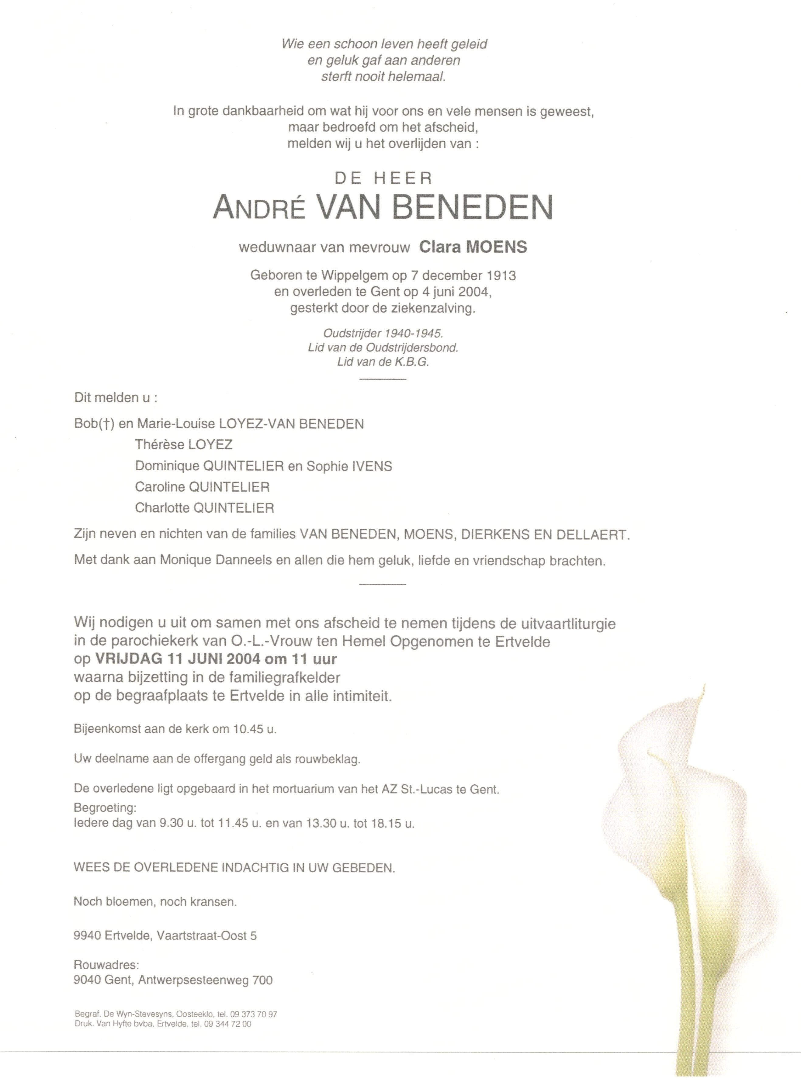 Van Audenaerde, Joseph (Waterland-Oudeman 14/9/1935 - Gent 8/2/2005) e. Demeyere, Juliana