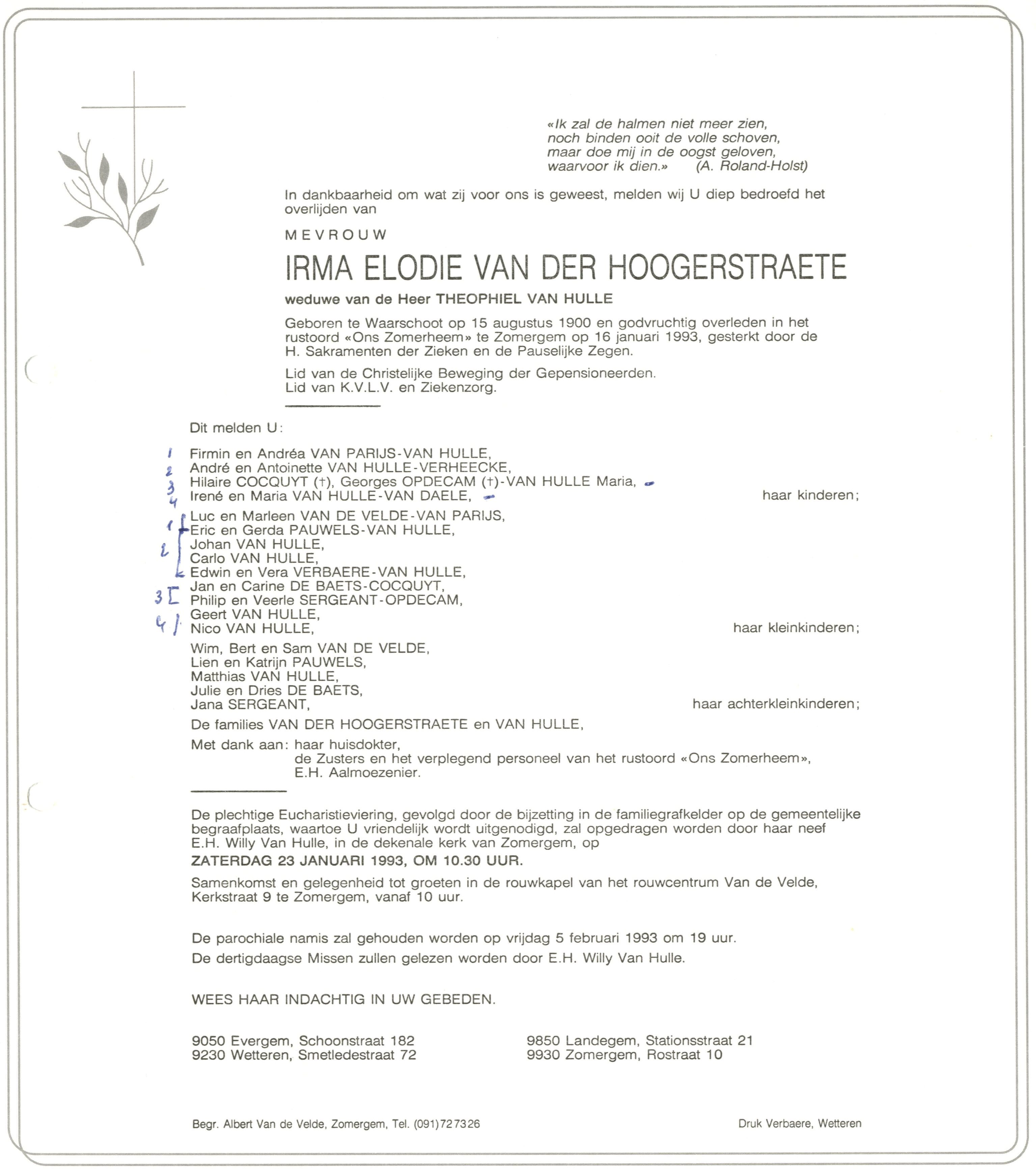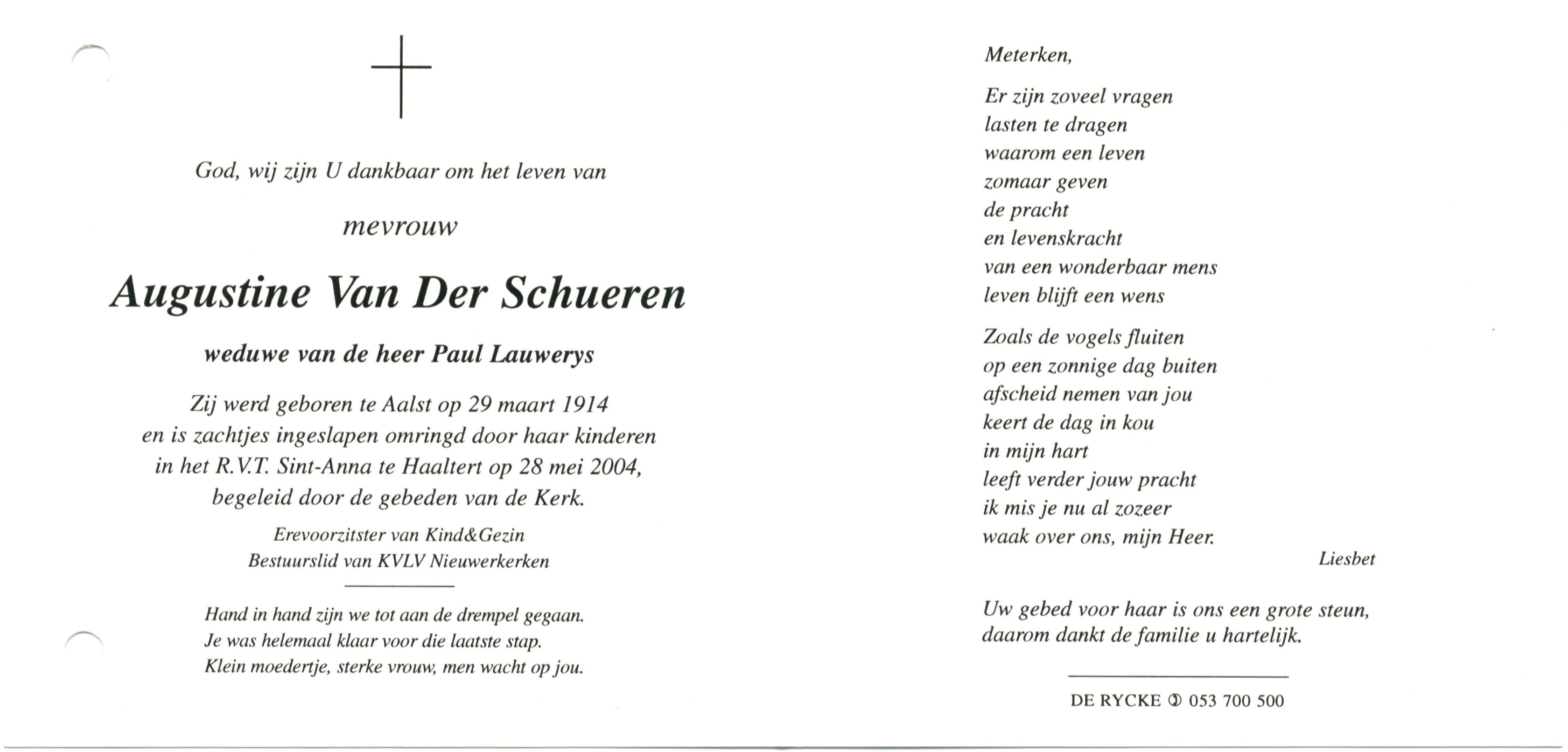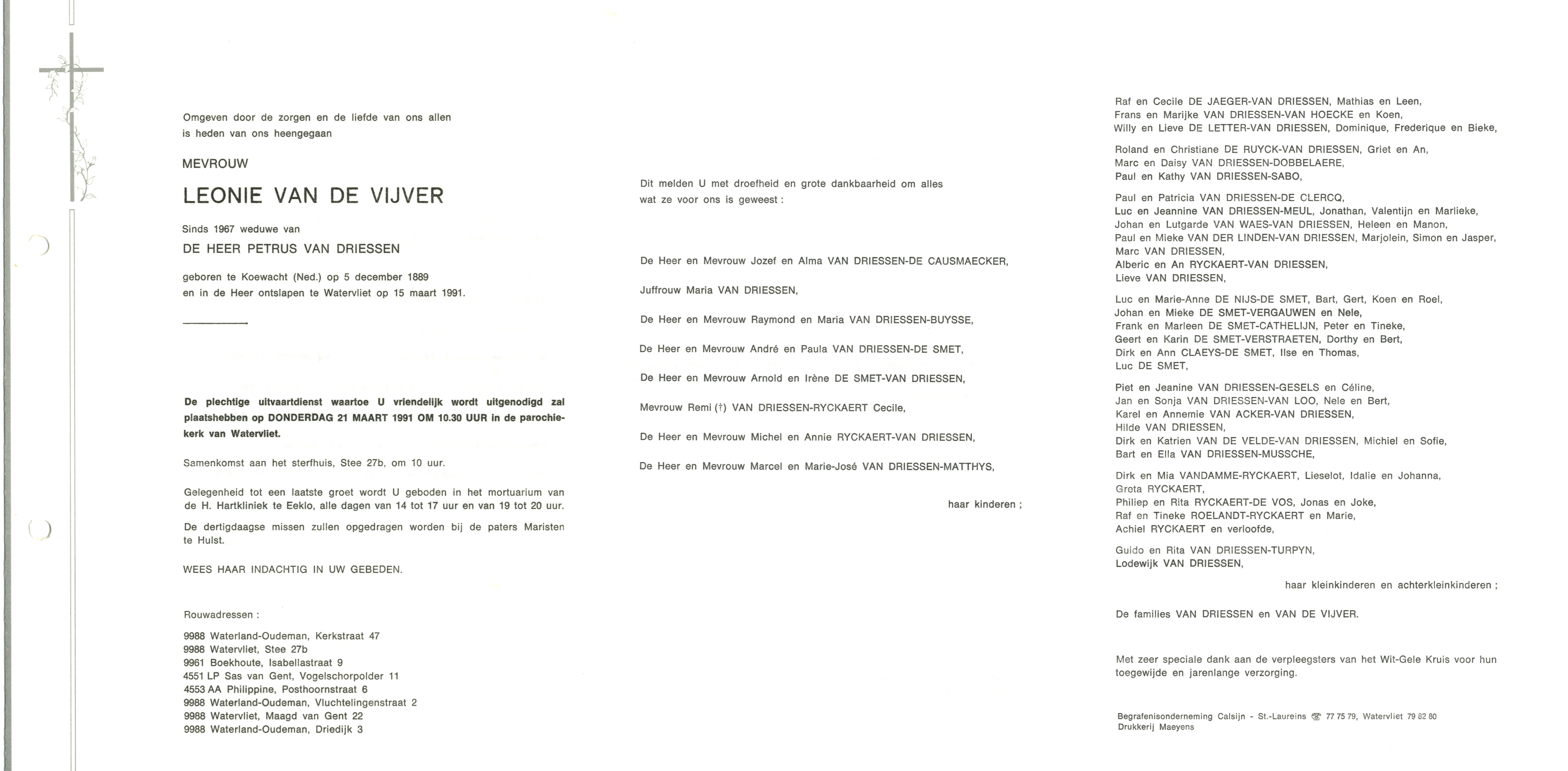Van de Woestijne, Denise (Kluizen 17/4/1933 - Gent 27/8/2007) e. De Wever, Joannes Andreas