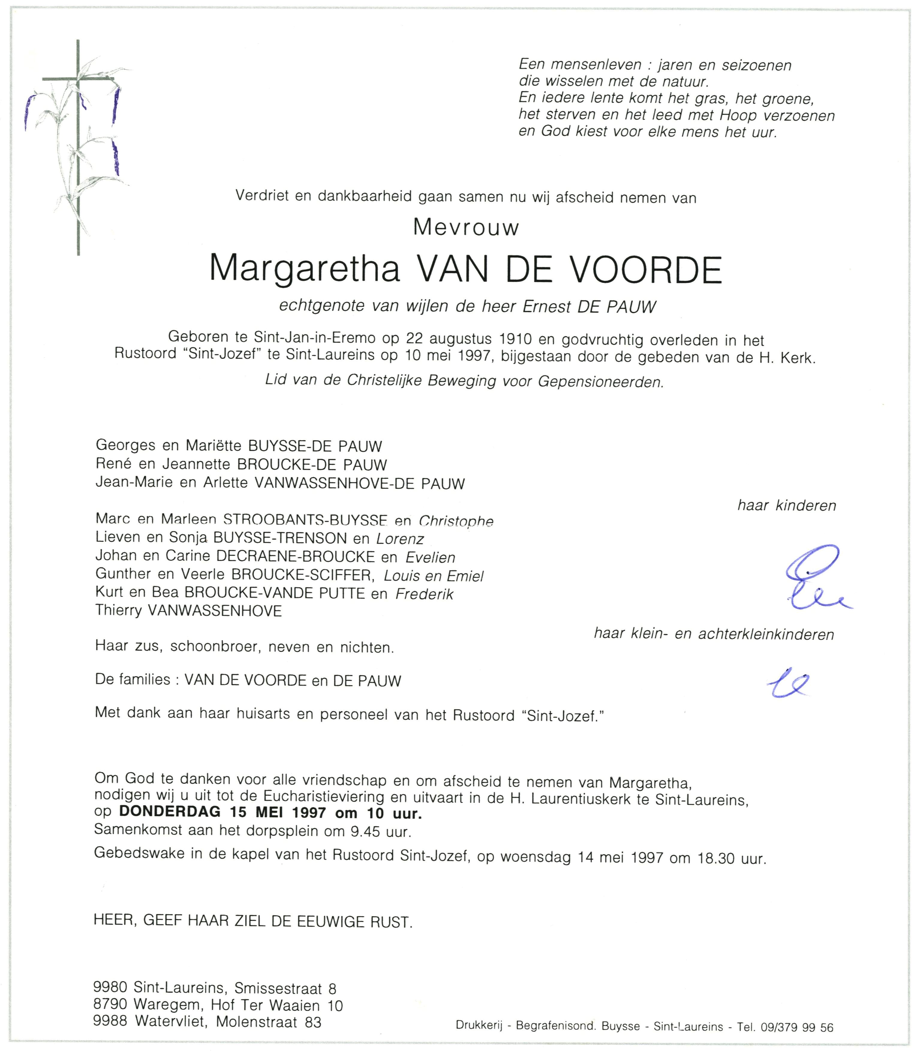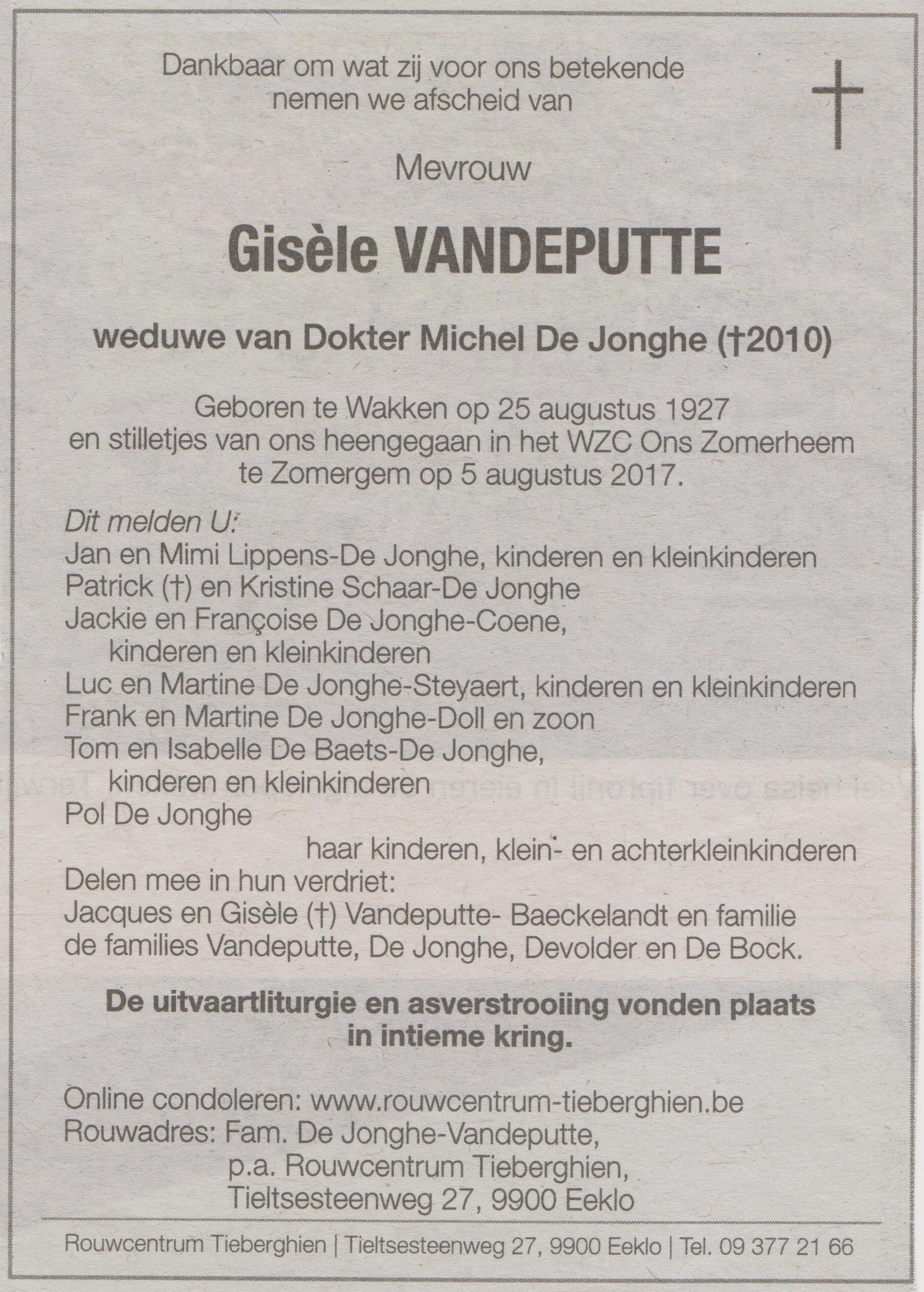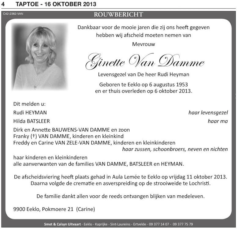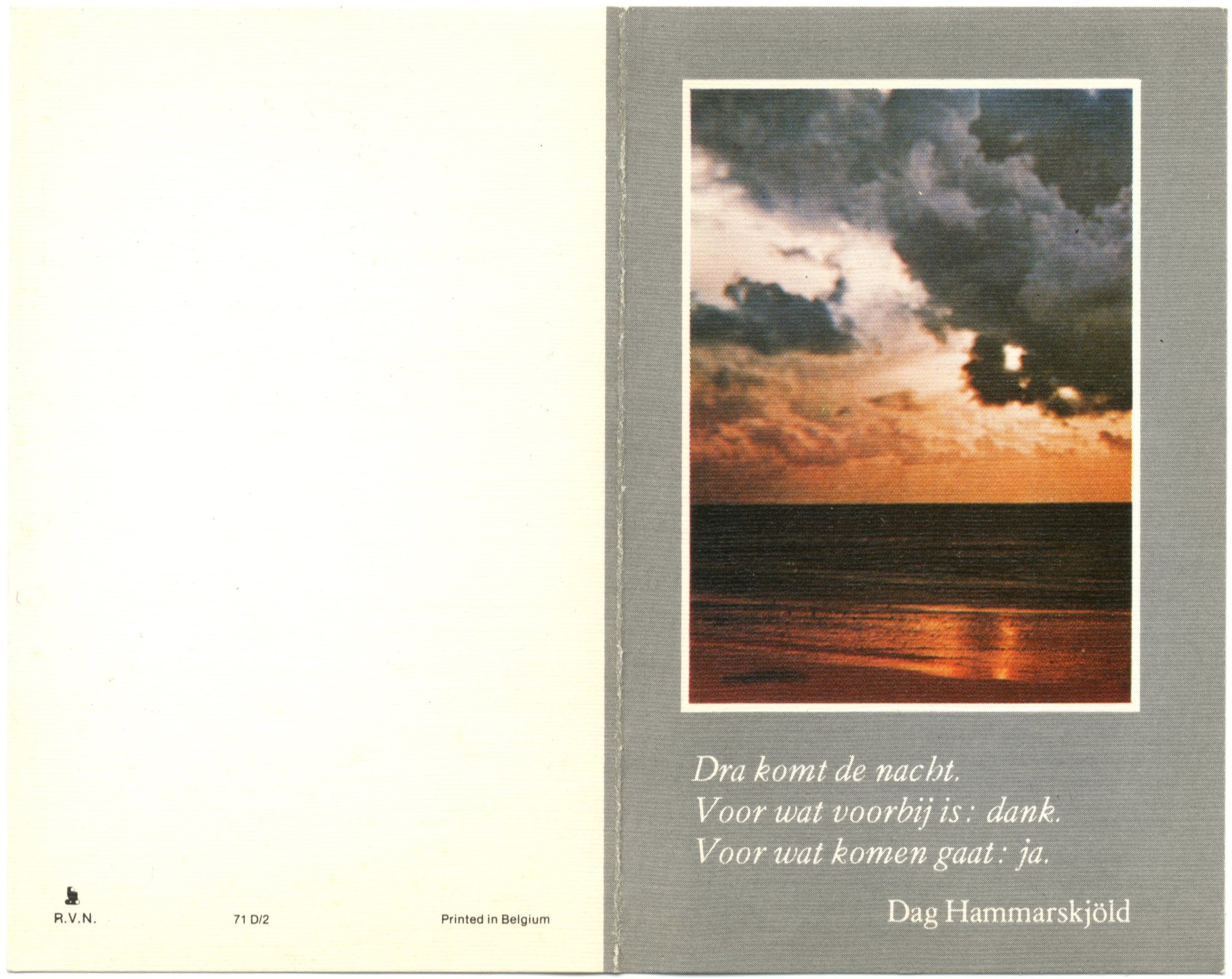 Van de Woestijne, Denise (Kluizen 17/4/1933 - Gent 27/8/2007) e. De Wever, Joannes Andreas