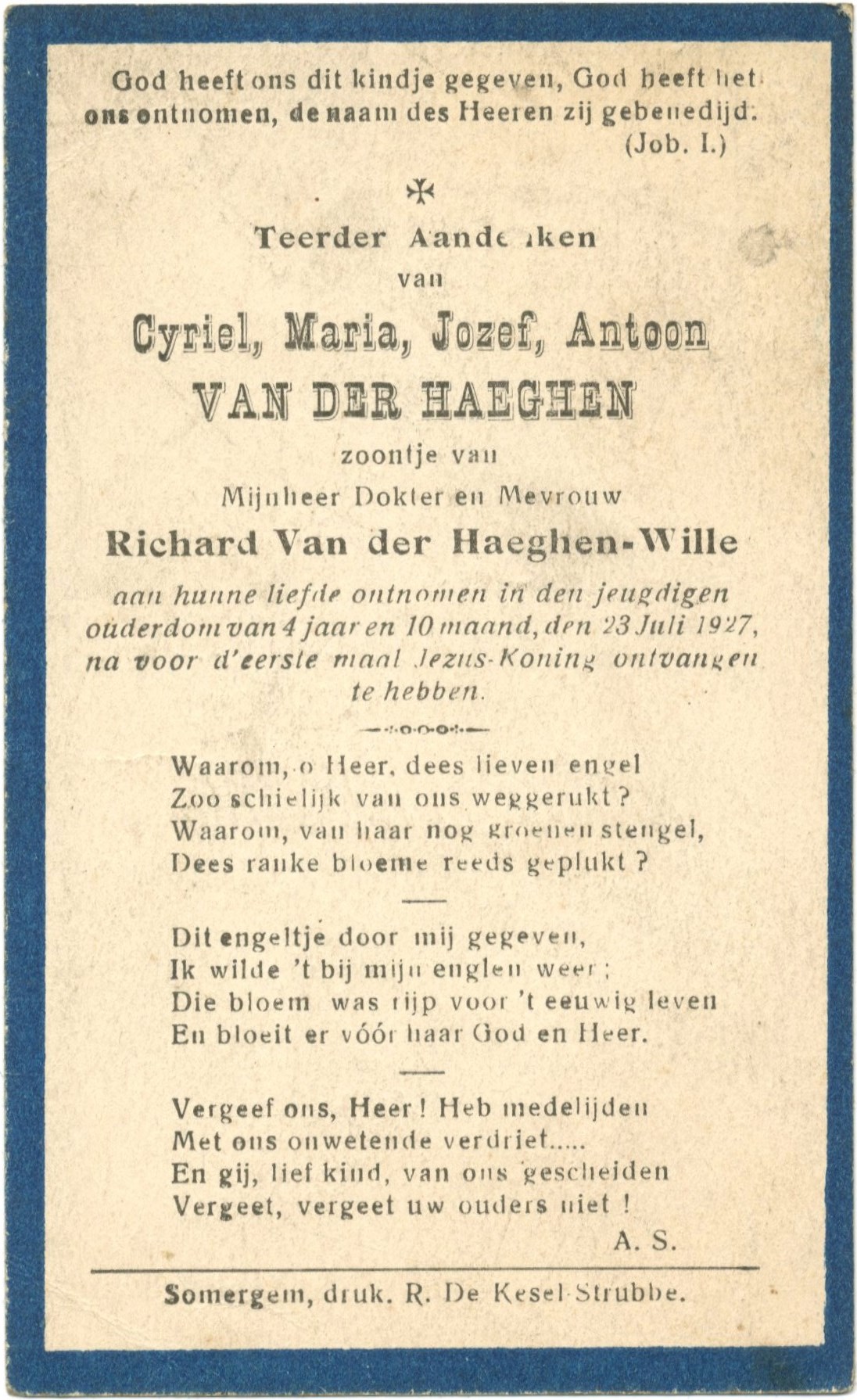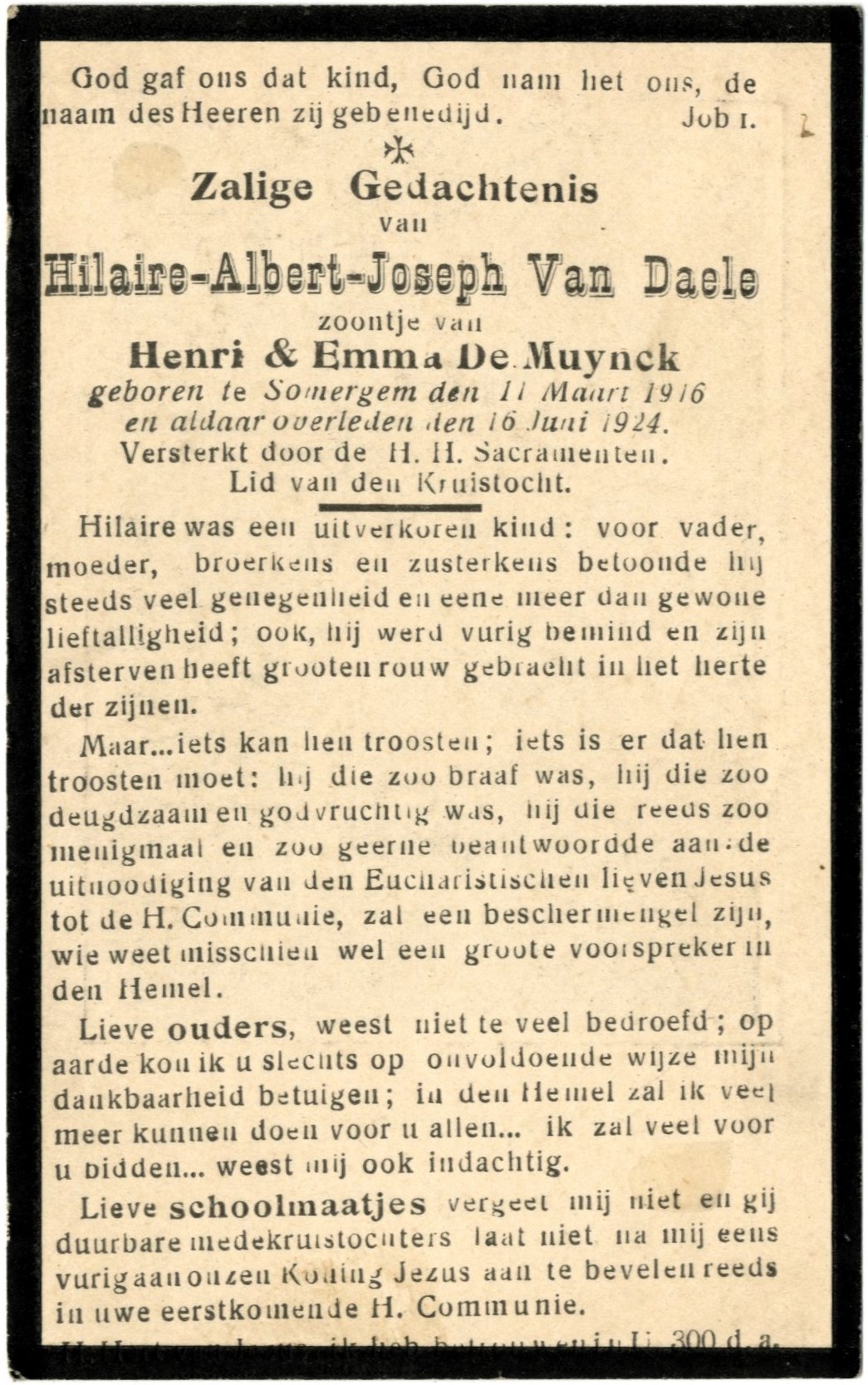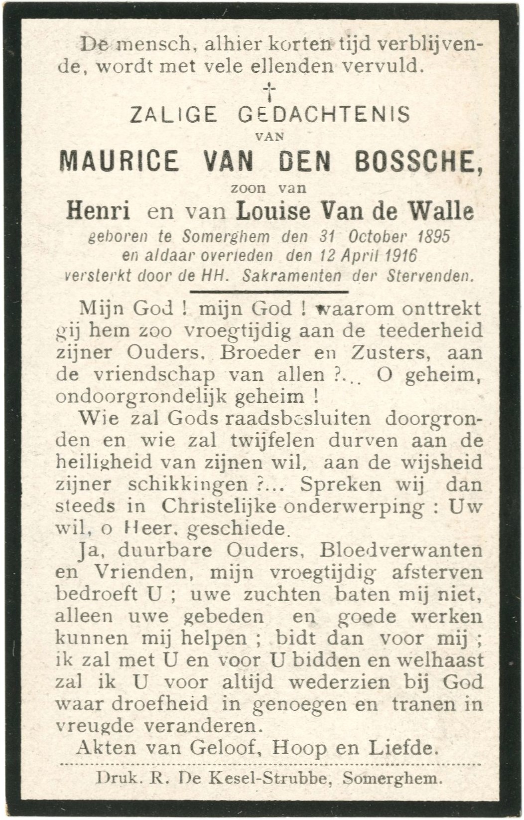 Van De Walle, Remi (Somergem 16/5/1892 - id 2/12/1928) fs. Van De Walle, Charles Louis en Van Vlaenderen, Marie